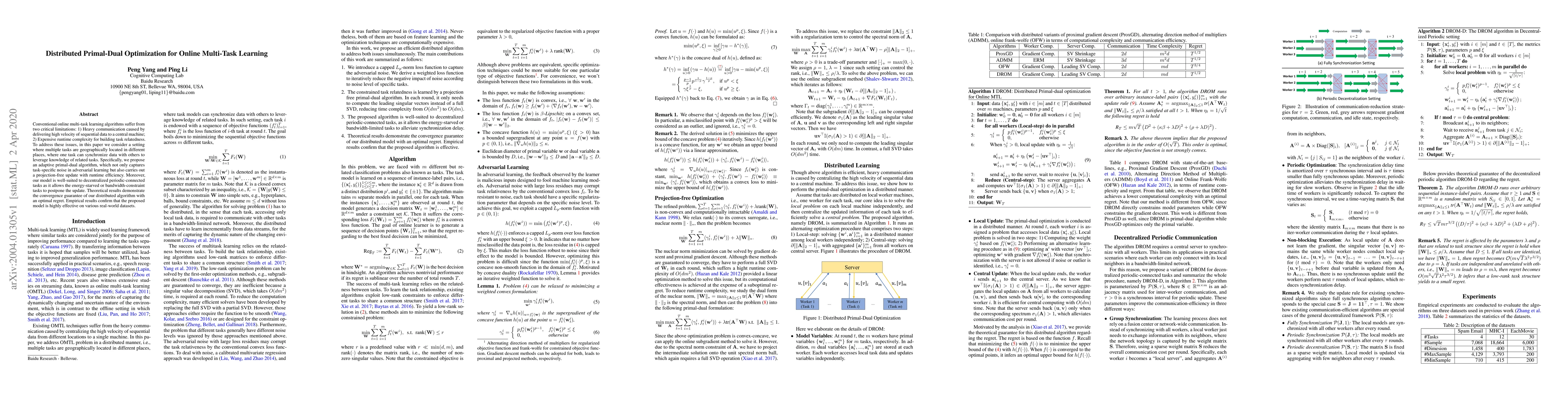 Researchers propose a distributed algorithm for online multi-task learning that addresses limitations of heavy communication and expensive runtime complexity, achieving convergence guarantee with optimal regret.