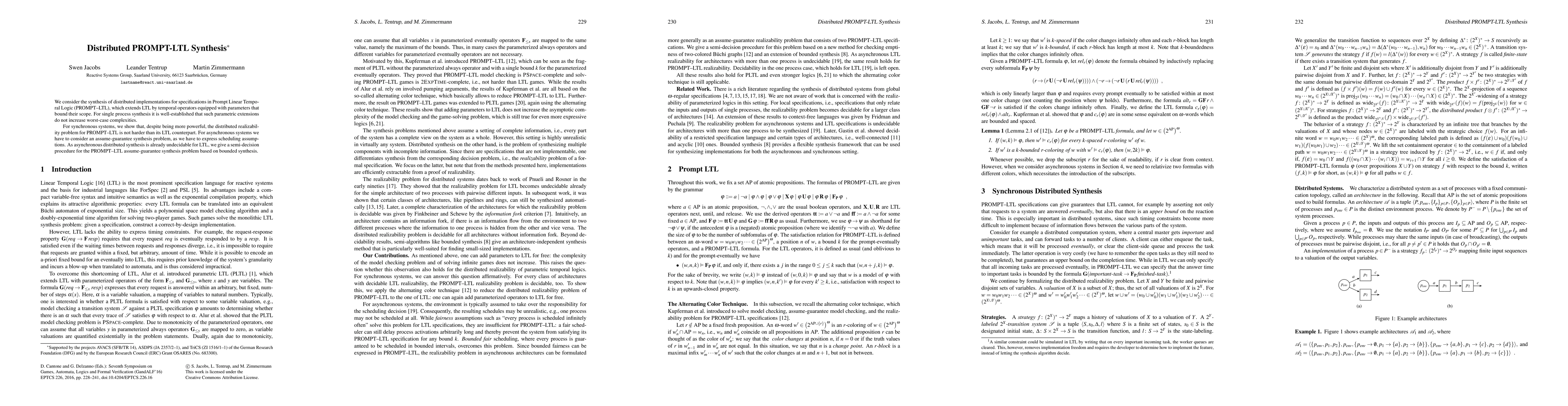 We consider the synthesis of distributed implementations for specifications in Prompt Linear Temporal Logic (PROMPT-LTL), which extends LTL by temporal operators equipped with parameters that bound their scope. For single process synthesis it is well-established that such parametric extensions do not increase worst-case complexities. For synchronous systems, we show that, despite being more powerful, the distributed realizability problem for PROMPT-LTL is not harder than its LTL counterpart. For asynchronous systems we have to consider an assume-guarantee synthesis problem, as we have to express scheduling assumptions. As asynchronous distributed synthesis is already undecidable for LTL, we give a semi-decision procedure for the PROMPT-LTL assume-guarantee synthesis problem based on bounded synthesis.