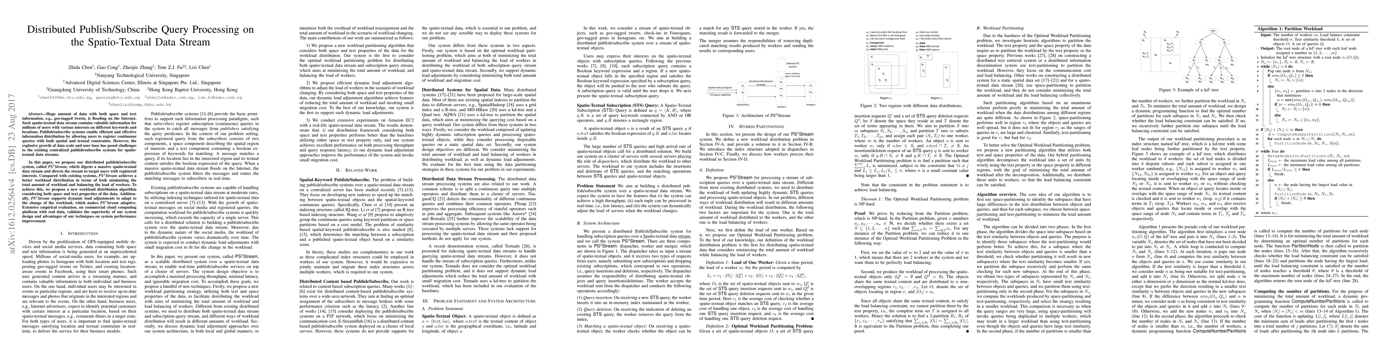 This paper proposes PS2Stream, a distributed publish/subscribe system for processing massive spatio-textual data streams, achieving better workload distribution and balancing through a new algorithm considering spatial and textual properties. The system's adaptive dynamic load adjustment and performance improvements are validated through extensive empirical evaluation on a commercial cloud platform.