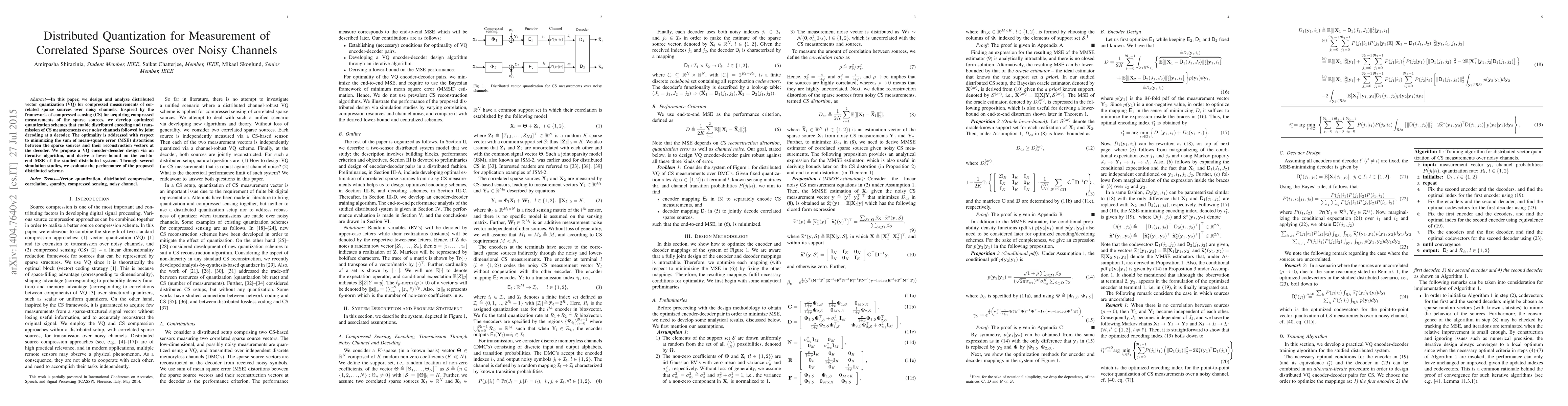 This paper proposes optimized distributed vector quantization schemes for compressed sensing of correlated sparse sources over noisy channels, aiming to minimize reconstruction error. It introduces an iterative encoder-decoder design and evaluates its performance through simulations.