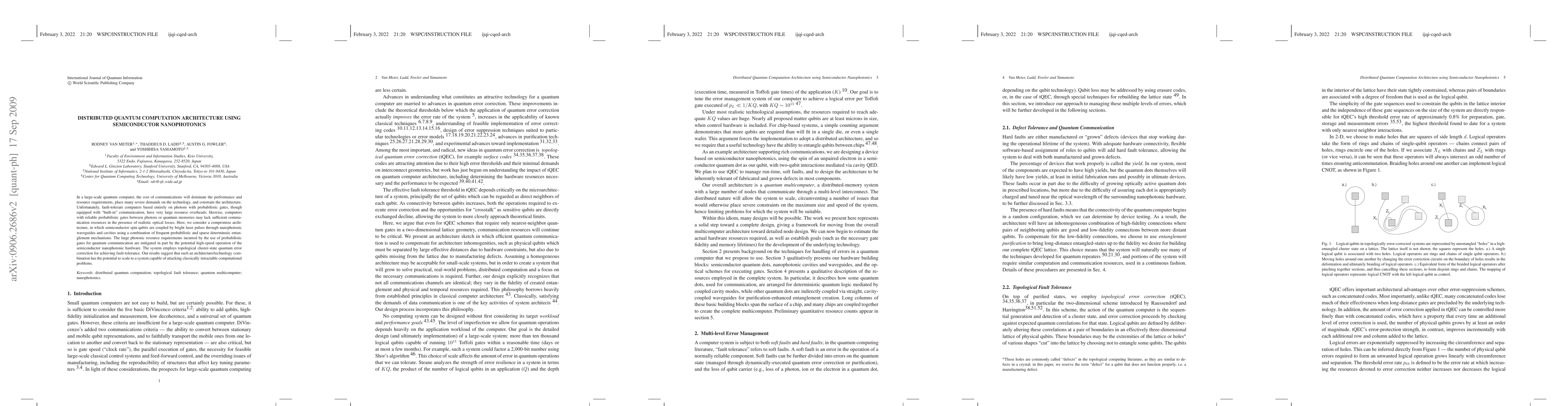 This paper proposes a distributed quantum computation architecture using semiconductor nanophotonics, combining semiconductor spin qubits with photonic waveguides and cavities. It aims to balance the resource overheads of photonic quantum communication with the high-speed operation of semiconductor nanophotonic hardware, employing topological cluster-state quantum error correction for fault-tolerance, suggesting potential scalability for solving classically intractable problems.