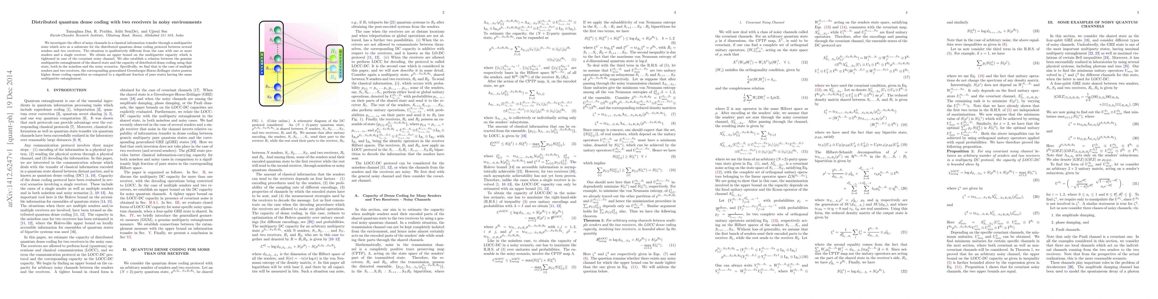 This paper examines the impact of noisy channels on distributed quantum dense coding involving multiple senders and two receivers, establishing an upper bound on multipartite capacity that is refined for covariant noisy channels. It also reveals that generalized Greenberger-Horne-Zeilinger states offer higher dense coding capacities compared to many pure states with equivalent multipartite entanglement.