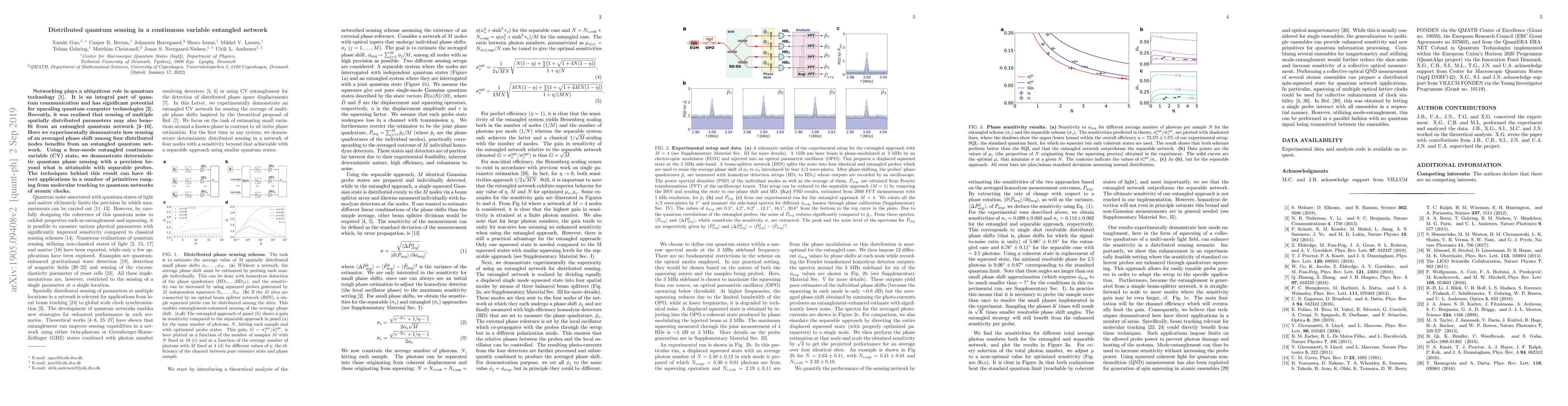 Networking plays a ubiquitous role in quantum technology. It is an integral part of quantum communication and has significant potential for upscaling quantum computer technologies that are otherwise not scalable. Recently, it was realized that sensing of multiple spatially distributed parameters may also benefit from an entangled quantum network. Here we experimentally demonstrate how sensing of an averaged phase shift among four distributed nodes benefits from an entangled quantum network. Using a four-mode entangled continuous variable (CV) state, we demonstrate deterministic quantum phase sensing with a precision beyond what is attainable with separable probes. The techniques behind this result can have direct applications in a number of primitives ranging from biological imaging to quantum networks of atomic clocks.