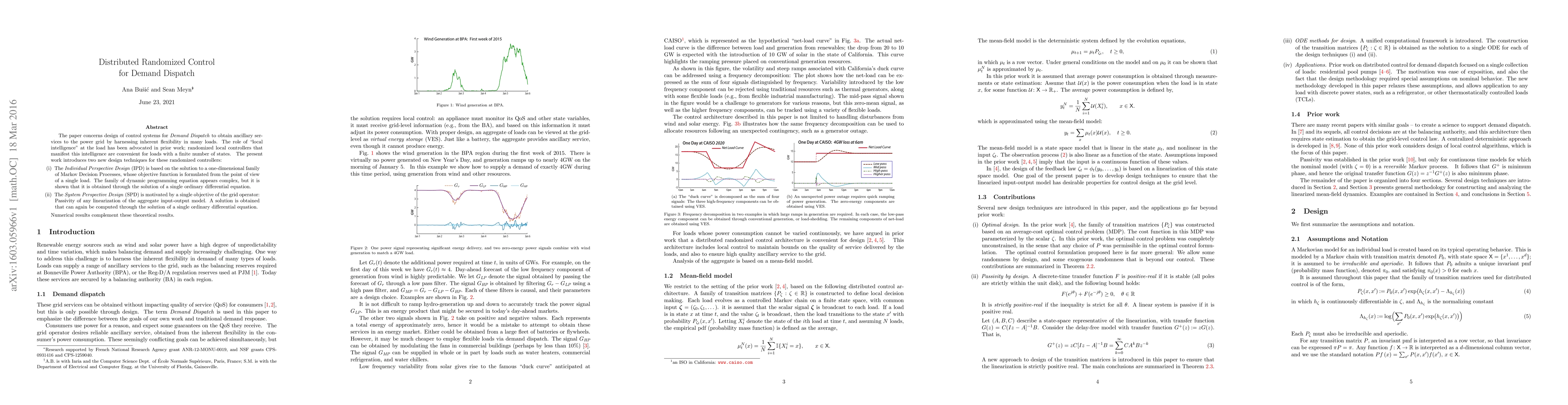 The paper concerns design of control systems for Demand Dispatch to obtain ancillary services to the power grid by harnessing inherent flexibility in many loads. The role of "local intelligence" at the load has been advocated in prior work, randomized local controllers that manifest this intelligence are convenient for loads with a finite number of states. The present work introduces two new design techniques for these randomized controllers: (i) The Individual Perspective Design (IPD) is based on the solution to a one-dimensional family of Markov Decision Processes, whose objective function is formulated from the point of view of a single load. The family of dynamic programming equation appears complex, but it is shown that it is obtained through the solution of a single ordinary differential equation. (ii) The System Perspective Design (SPD) is motivated by a single objective of the grid operator: Passivity of any linearization of the aggregate input-output model. A solution is obtained that can again be computed through the solution of a single ordinary differential equation. Numerical results complement these theoretical results.
