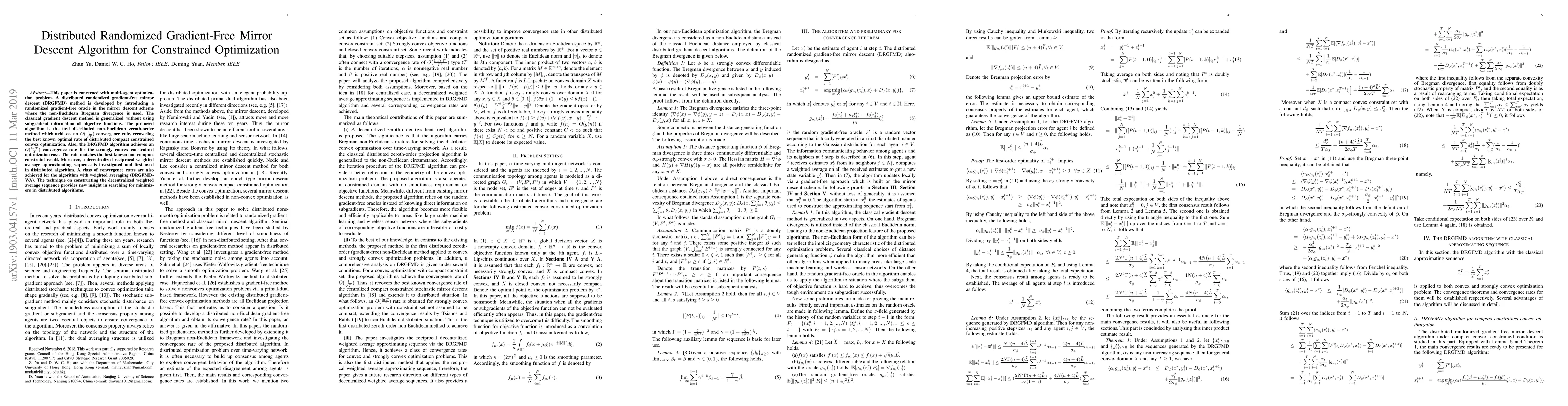 This paper introduces a distributed randomized gradient-free mirror descent (DRGFMD) algorithm for multi-agent optimization, achieving optimal convergence rates for both compact and strongly convex constrained optimization without using gradient information. The method also explores a decentralized weighted average sequence for enhanced performance.