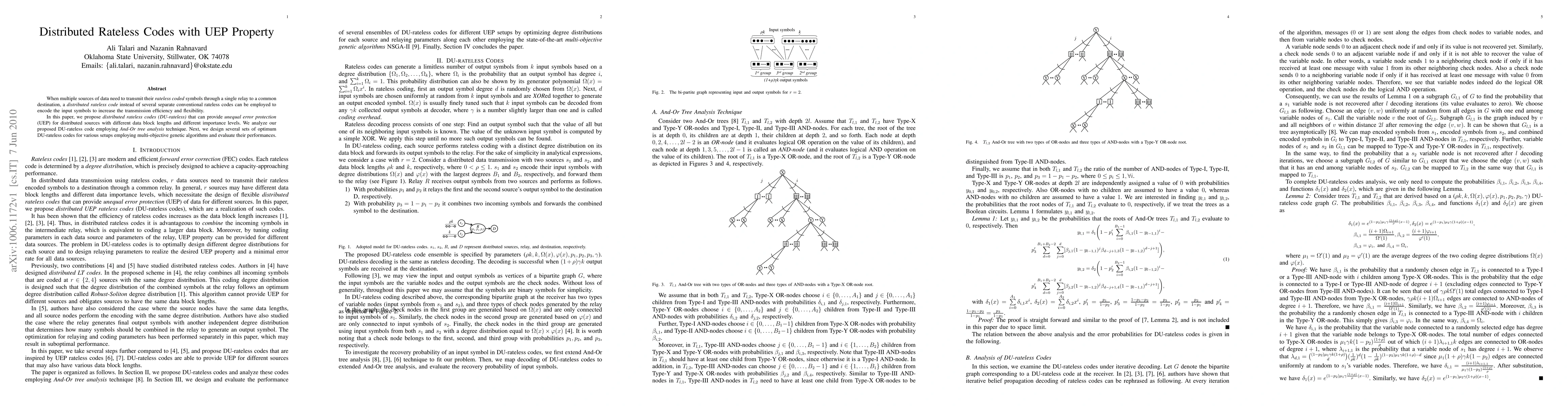 A distributed rateless coding scheme was proposed with unequal error protection (UEP) property.