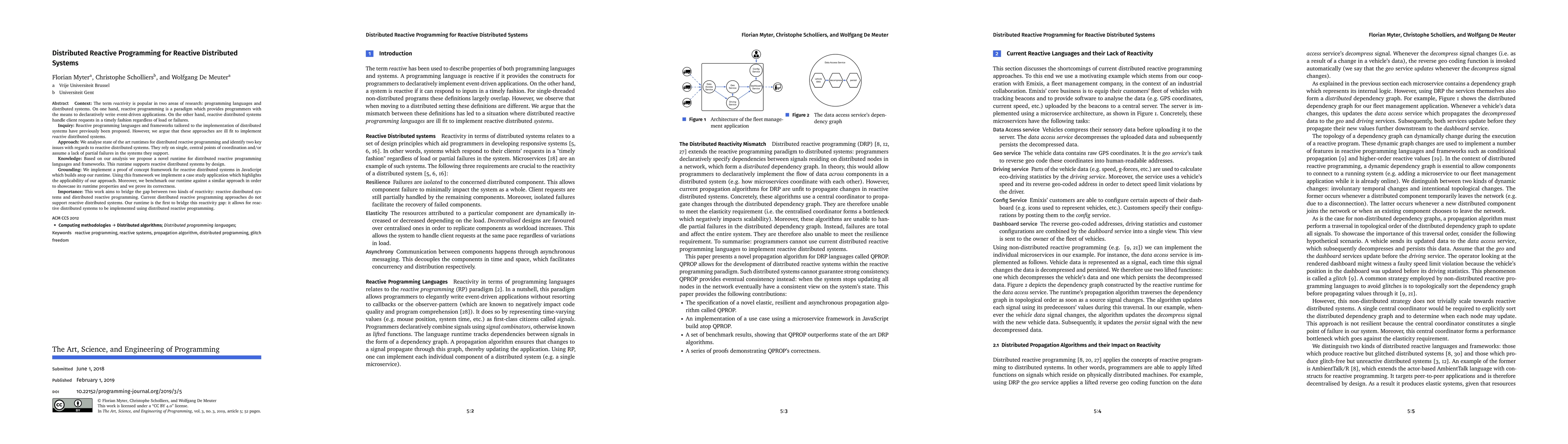 This paper critiques existing distributed reactive programming approaches for their inadequacy in supporting reactive distributed systems. It proposes a novel runtime that addresses the identified issues, such as central coordination points and lack of partial failure handling, and demonstrates its effectiveness through a JavaScript-based proof of concept framework and a case study application.