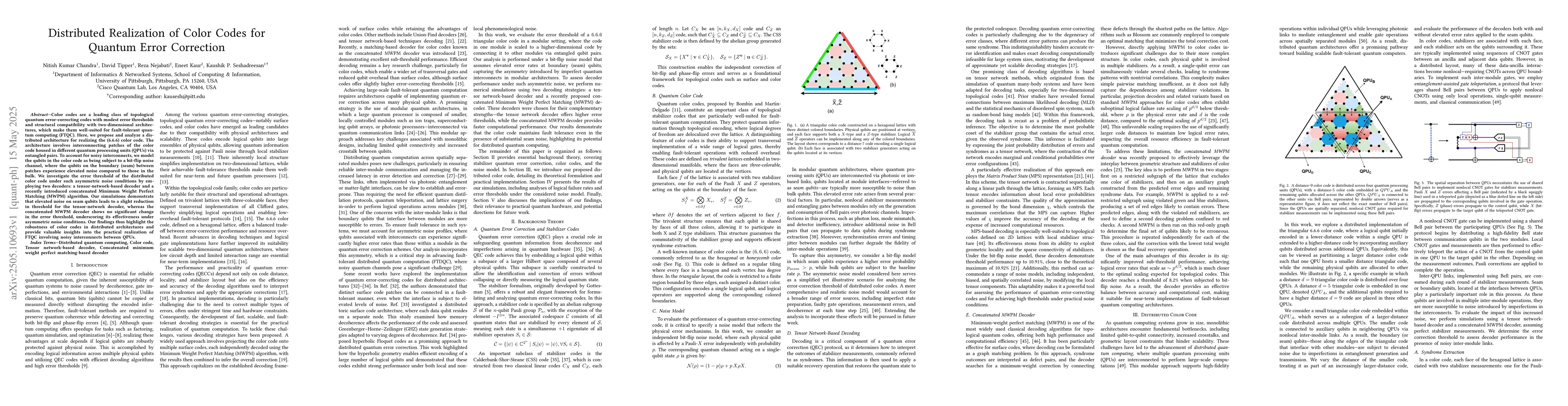 Researchers propose a distributed architecture for realizing color codes in quantum error correction, showing that even with noisy interconnects, these codes remain robust and effective.