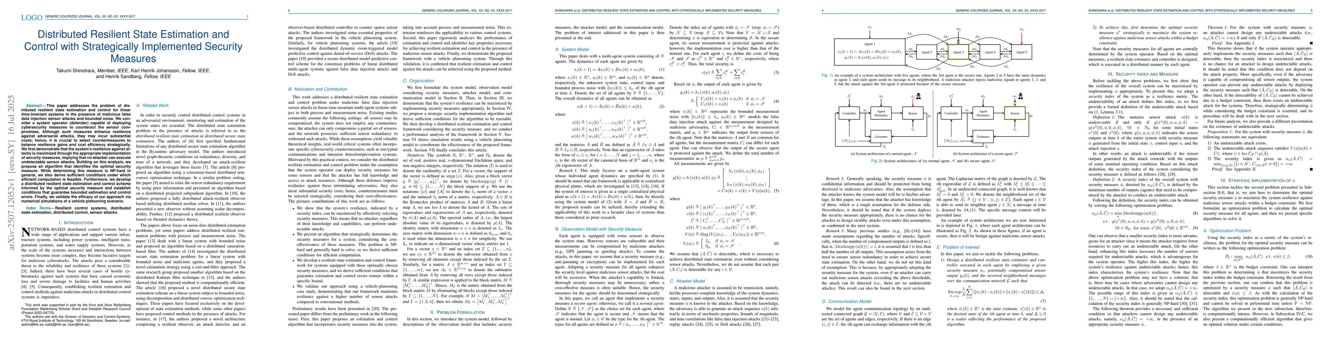 This paper presents a strategy for enhancing the resilience of distributed systems against malicious sensor attacks, balancing security measures with costs. It introduces an algorithm to identify optimal security measures, ensuring undetectable attacks are impossible, and provides a distributed state estimation and control scheme validated through simulations in a vehicle platooning scenario.