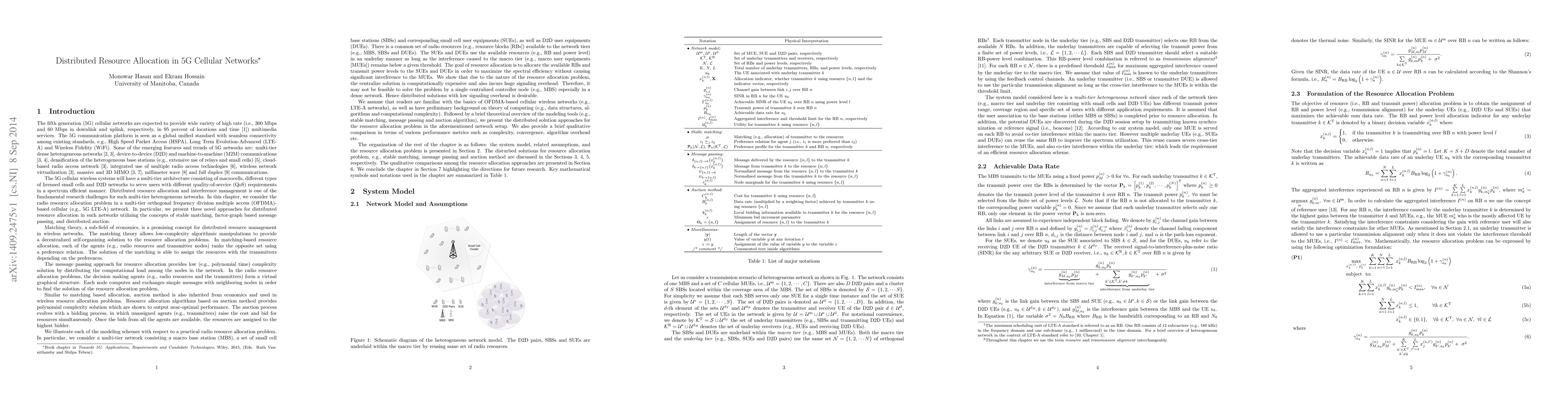 The 5G cellular wireless systems will have a multi-tier architecture consisting of macrocells, different types of licensed small cells and D2D networks to serve users with different quality-of-service (QoS) requirements in a spectrum efficient manner. Distributed resource allocation and interference management is one of the fundamental research challenges for such multi-tier heterogeneous networks. In this chapter, we consider the radio resource allocation problem in a multi-tier orthogonal frequency division multiple access (OFDMA)-based cellular (e.g., 5G LTE-A) network. In particular, we present three novel approaches for distributed resource allocation in such networks utilizing the concepts of stable matching, factor-graph based message passing, and distributed auction. We illustrate each of the modeling schemes with respect to a practical radio resource allocation problem. In particular, we consider a multi-tier network consisting a macro base station (MBS), a set of small cell base stations (SBSs) and corresponding small cell user equipments (SUEs), as well as D2D user equipments (DUEs). There is a common set of radio resources (e.g., resource blocks [RBs]) available to the network tiers (e.g., MBS, SBSs and DUEs). The SUEs and DUEs use the available resources (e.g., RB and power level) in an underlay manner as long as the interference caused to the macro tier (e.g., macro user equipments [MUEs]) remains below a given threshold. Followed by a brief theoretical overview of the modeling tools (e.g., stable matching, message passing and auction algorithm), we present the distributed solution approaches for the resource allocation problem in the aforementioned network setup. We also provide a brief qualitative comparison in terms of various performance metrics such as complexity, convergence, algorithm overhead etc.