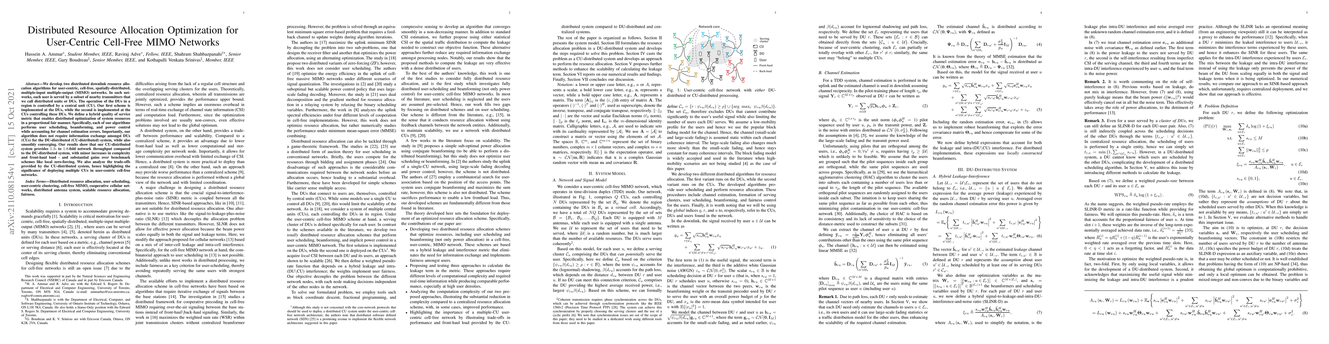 This paper proposes two distributed resource allocation algorithms for user-centric cell-free MIMO networks, optimizing user scheduling, beamforming, and power control. The CU-distributed system shows 1.3- to 1.8-fold higher throughput compared to the DU-distributed system, with minor complexity increases and substantial gains over benchmark schemes.