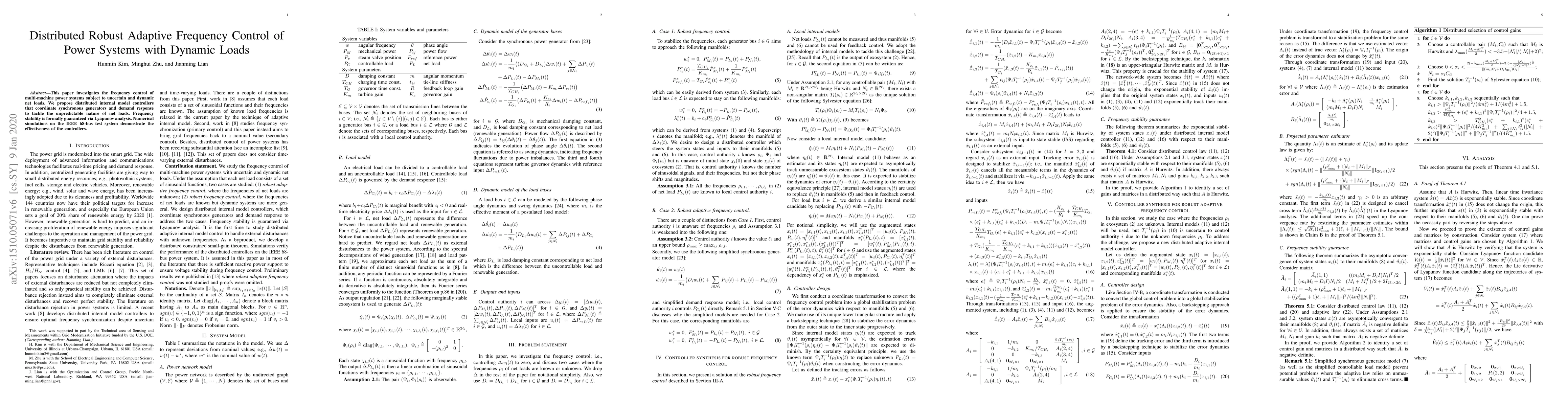 This paper proposes distributed internal model controllers for robust adaptive frequency control in multi-machine power systems with dynamic loads. The approach ensures frequency stability through Lyapunov analysis and is validated through simulations on the IEEE 68-bus test system.