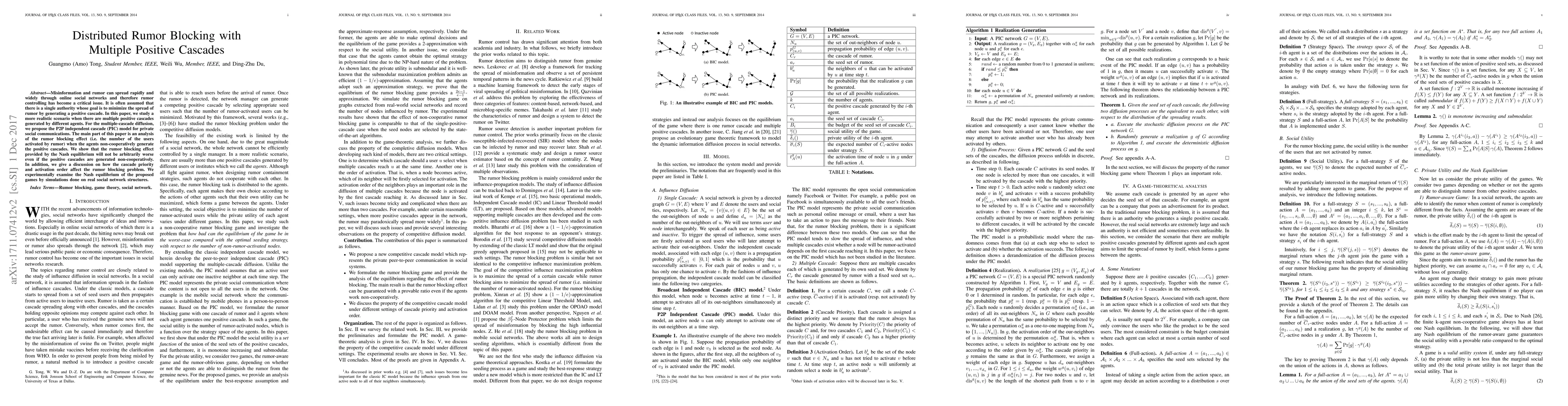 This paper explores rumor blocking in online social networks with multiple positive cascades generated by different agents. It proposes the P2P independent cascade (PIC) model and analyzes the rumor blocking effect under non-cooperative conditions, demonstrating that Nash equilibrium can still provide effective rumor control despite decentralized generation of positive cascades.