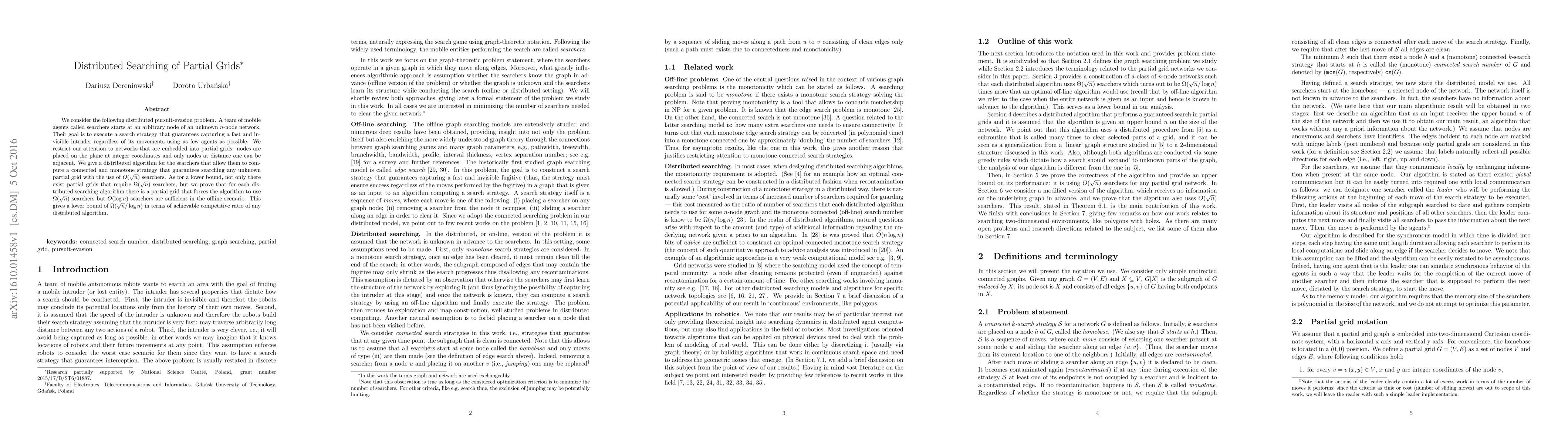 Researchers developed a distributed algorithm to search for an invisible intruder in a partial grid network using O(sqrt(n)) agents, with implications for competitive ratios in distributed algorithms.