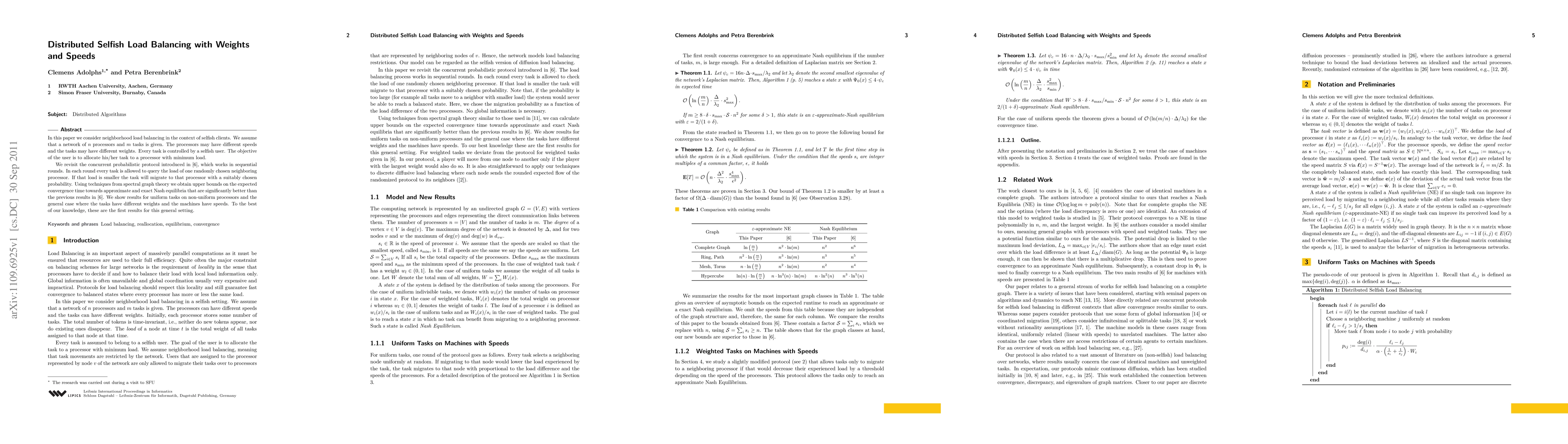 The paper revisits a concurrent probabilistic protocol for distributed selfish load balancing in networks with non-uniform processor speeds and task weights. It uses spectral graph theory techniques to analyze the convergence time towards approximate and exact Nash equilibria.