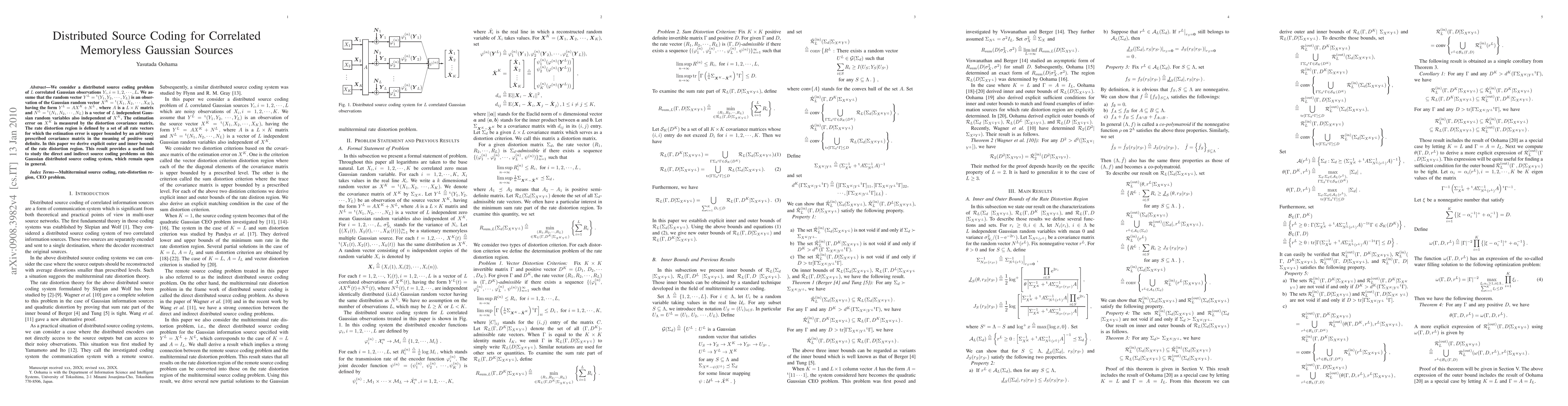 This paper investigates distributed source coding for $L$ correlated memoryless Gaussian sources, deriving explicit outer and inner bounds for the rate distortion region. These bounds facilitate the study of direct and indirect source coding problems for Gaussian distributed systems.