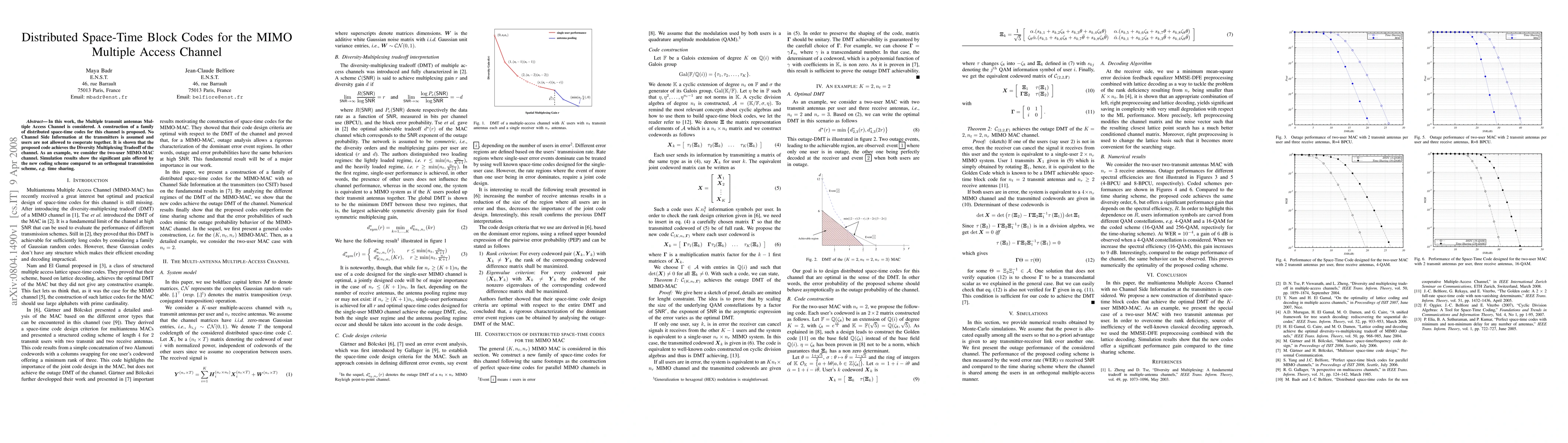 In this work, the Multiple transmit antennas Multiple Access Channel is considered. A construction of a family of distributed space-time codes for this channel is proposed. No Channel Side Information at the transmitters is assumed and users are not allowed to cooperate together. It is shown that the proposed code achieves the Diversity Multiplexing Tradeoff of the channel. As an example, we consider the two-user MIMO-MAC channel. Simulation results show the significant gain offered by the new coding scheme compared to an orthogonal transmission scheme, e.g. time sharing.