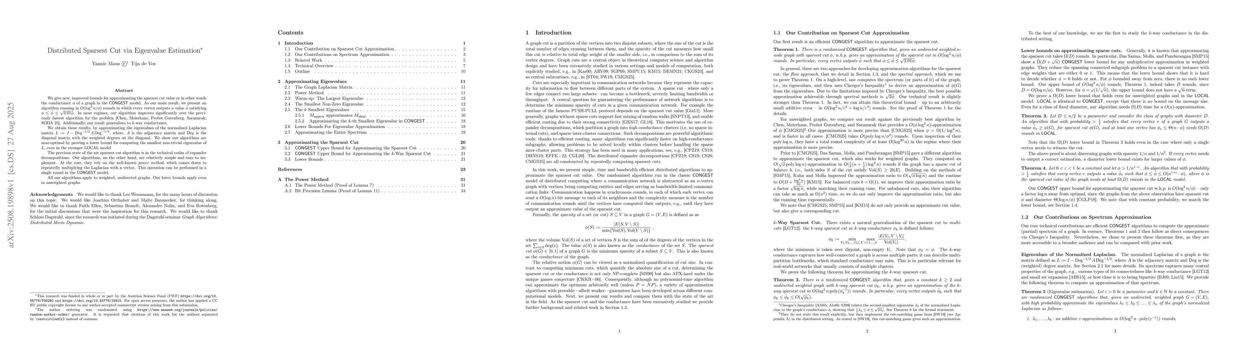 We give new, improved bounds for approximating the sparsest cut value or in other words the conductance $\phi$ of a graph in the CONGEST model. As our main result, we present an algorithm running in $O(\log^2 n/\phi)$ rounds in which every vertex outputs a value $\tilde \phi$ satisfying $\phi \le \tilde \phi \le \sqrt{2.01\phi}$. In most regimes, our algorithm improves significantly over the previously fastest algorithm for the problem [Chen, Meierhans, Probst Gutenberg, Saranurak; SODA 25]. Additionally, our result generalizes to $k$-way conductance. We obtain these results, by approximating the eigenvalues of the normalized Laplacian matrix $L:=I-\rm{Deg}^{-1/2}A\rm{Deg}^ {-1/2}$, where, $A$ is the adjacency matrix and $\rm{Deg}$ is the diagonal matrix with the weighted degrees on the diagonal. The previous state of the art sparsest cut algorithm is in the technical realm of expander decompositions. Our algorithms, on the other hand, are relatively simple and easy to implement. At the core, they rely on the well-known power method, which comes down to repeatedly multiplying the Laplacian with a vector. This operation can be performed in a single round in the CONGEST model. All our algorithms apply to weighted, undirected graphs. Our lower bounds apply even in unweighted graphs.