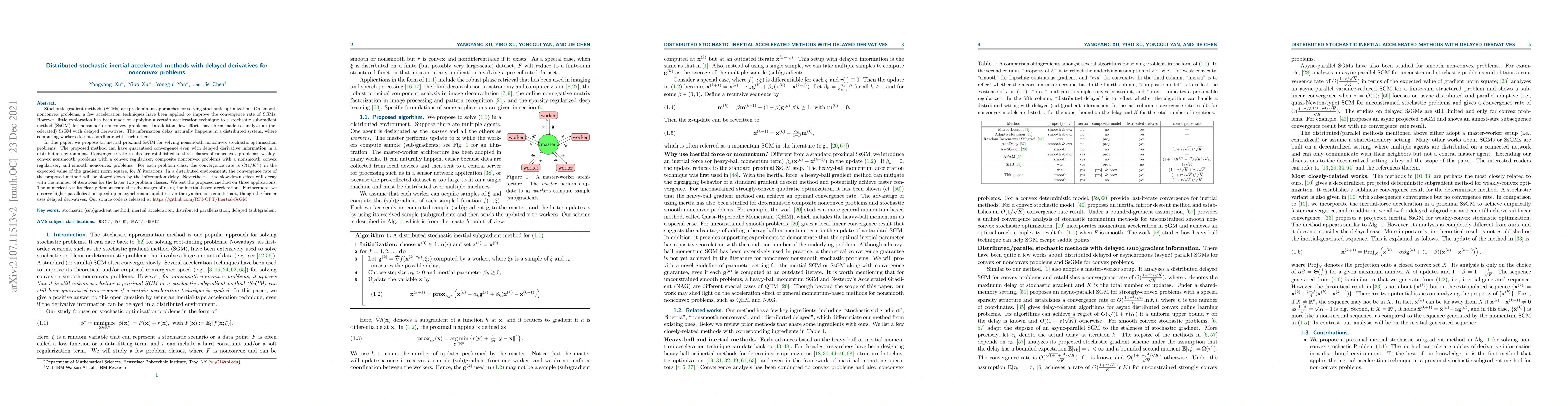 Stochastic gradient methods (SGMs) are predominant approaches for solving stochastic optimization. On smooth nonconvex problems, a few acceleration techniques have been applied to improve the convergence rate of SGMs. However, little exploration has been made on applying a certain acceleration technique to a stochastic subgradient method (SsGM) for nonsmooth nonconvex problems. In addition, few efforts have been made to analyze an (accelerated) SsGM with delayed derivatives. The information delay naturally happens in a distributed system, where computing workers do not coordinate with each other. In this paper, we propose an inertial proximal SsGM for solving nonsmooth nonconvex stochastic optimization problems. The proposed method can have guaranteed convergence even with delayed derivative information in a distributed environment. Convergence rate results are established to three classes of nonconvex problems: weakly-convex nonsmooth problems with a convex regularizer, composite nonconvex problems with a nonsmooth convex regularizer, and smooth nonconvex problems. For each problem class, the convergence rate is $O(1/K^{\frac{1}{2}})$ in the expected value of the gradient norm square, for $K$ iterations. In a distributed environment, the convergence rate of the proposed method will be slowed down by the information delay. Nevertheless, the slow-down effect will decay with the number of iterations for the latter two problem classes. We test the proposed method on three applications. The numerical results clearly demonstrate the advantages of using the inertial-based acceleration. Furthermore, we observe higher parallelization speed-up in asynchronous updates over the synchronous counterpart, though the former uses delayed derivatives. Our source code is released at https://github.com/RPI-OPT/Inertial-SsGM