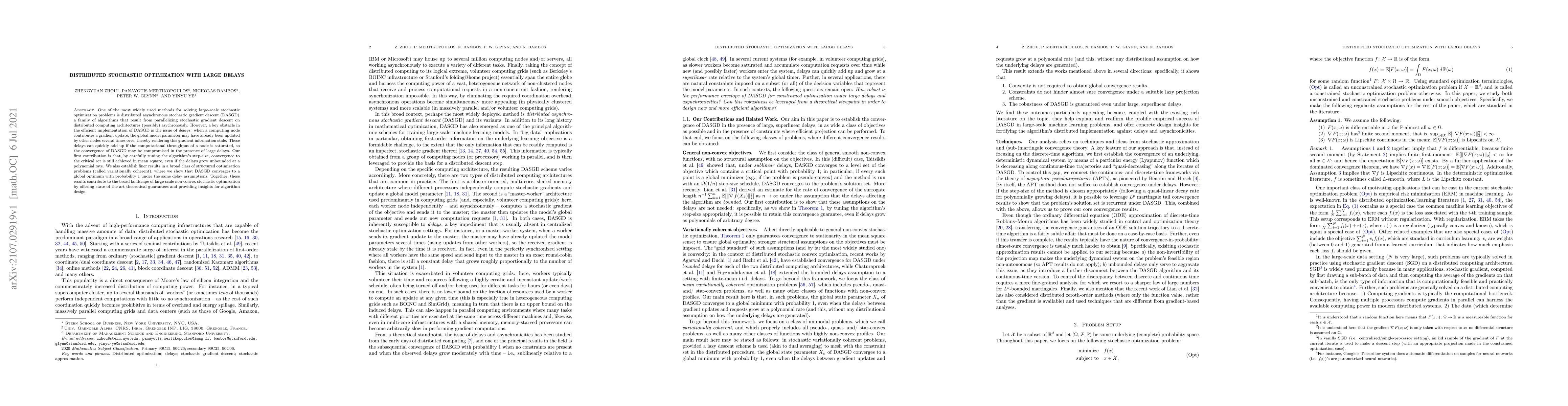 This paper addresses the challenges of large delays in distributed asynchronous stochastic gradient descent (DASGD) for solving large-scale stochastic optimization problems. It demonstrates that by tuning the algorithm's step-size, DASGD can still converge to a critical set even with unbounded polynomial delays, and it further proves convergence to a global optimum under certain conditions.