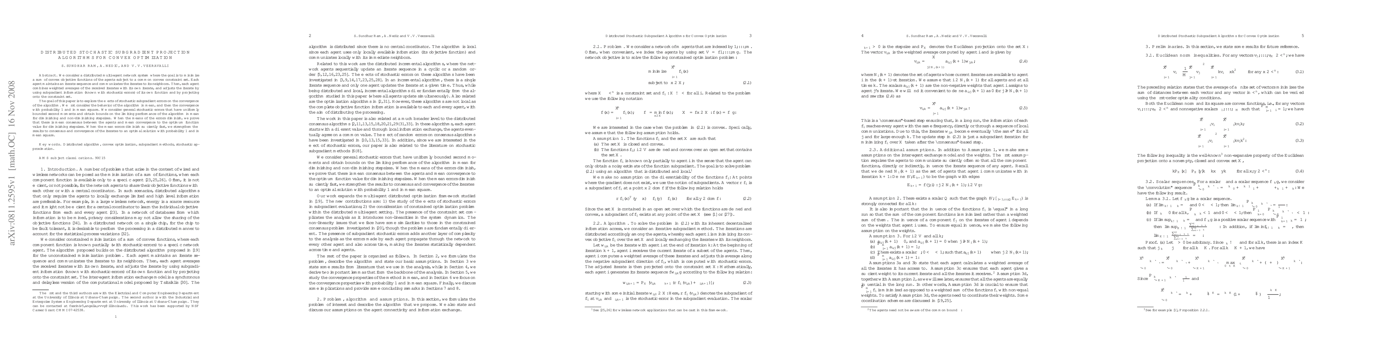 This paper investigates distributed stochastic subgradient projection algorithms for convex optimization in multi-agent networks, focusing on convergence under stochastic errors. It proves mean consensus and convergence to the optimal value under diminishing step sizes, and further establishes almost sure and mean square convergence when error means diminish sufficiently fast.