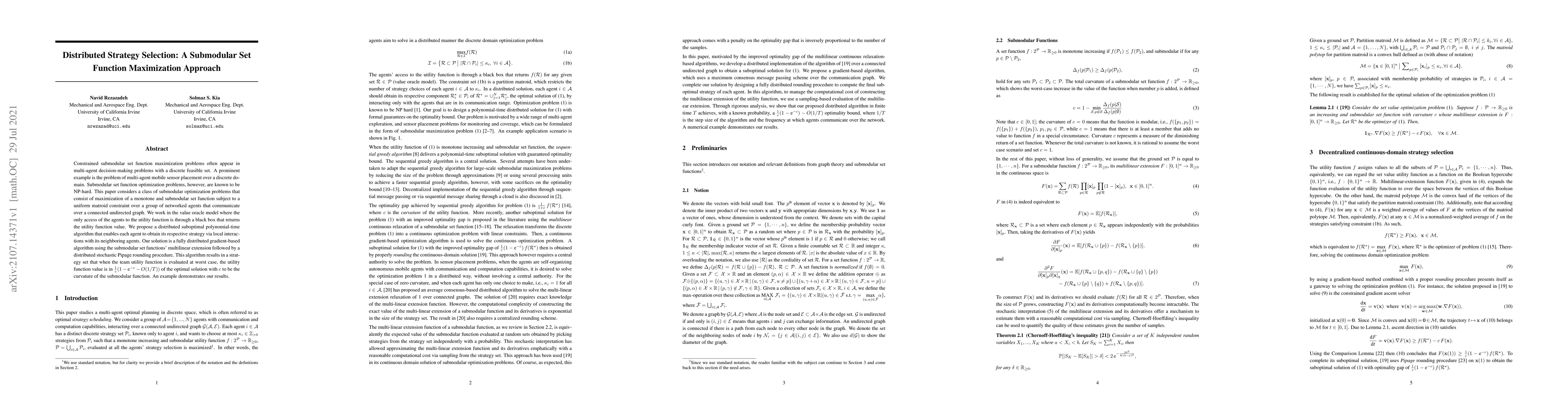 Constrained submodular set function maximization problems often appear in multi-agent decision-making problems with a discrete feasible set. A prominent example is the problem of multi-agent mobile sensor placement over a discrete domain. Submodular set function optimization problems, however, are known to be NP-hard. This paper considers a class of submodular optimization problems that consist of maximization of a monotone and submodular set function subject to a uniform matroid constraint over a group of networked agents that communicate over a connected undirected graph. We work in the value oracle model where the only access of the agents to the utility function is through a black box that returns the utility function value. We propose a distributed suboptimal polynomial-time algorithm that enables each agent to obtain its respective strategy via local interactions with its neighboring agents. Our solution is a fully distributed gradient-based algorithm using the submodular set functions' multilinear extension followed by a distributed stochastic Pipage rounding procedure. This algorithm results in a strategy set that when the team utility function is evaluated at worst case, the utility function value is in 1/c(1-e^(-c)-O(1/T)) of the optimal solution with c to be the curvature of the submodular function. An example demonstrates our results.