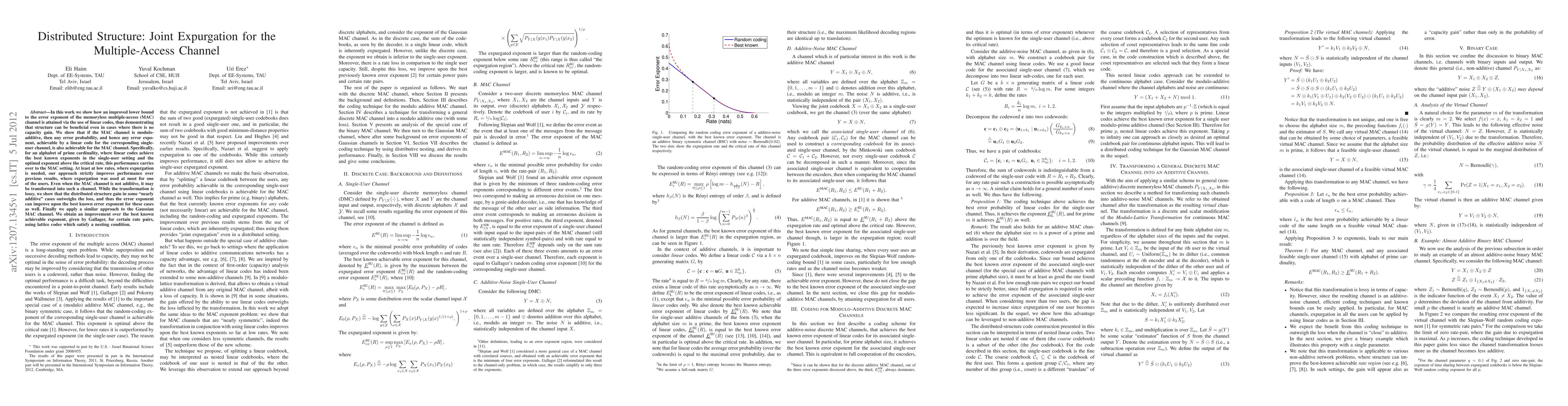 This research paper shows that using linear codes can improve error exponents for the multiple-access channel, even when there is no capacity gain, and applies this approach to Gaussian MAC channels.