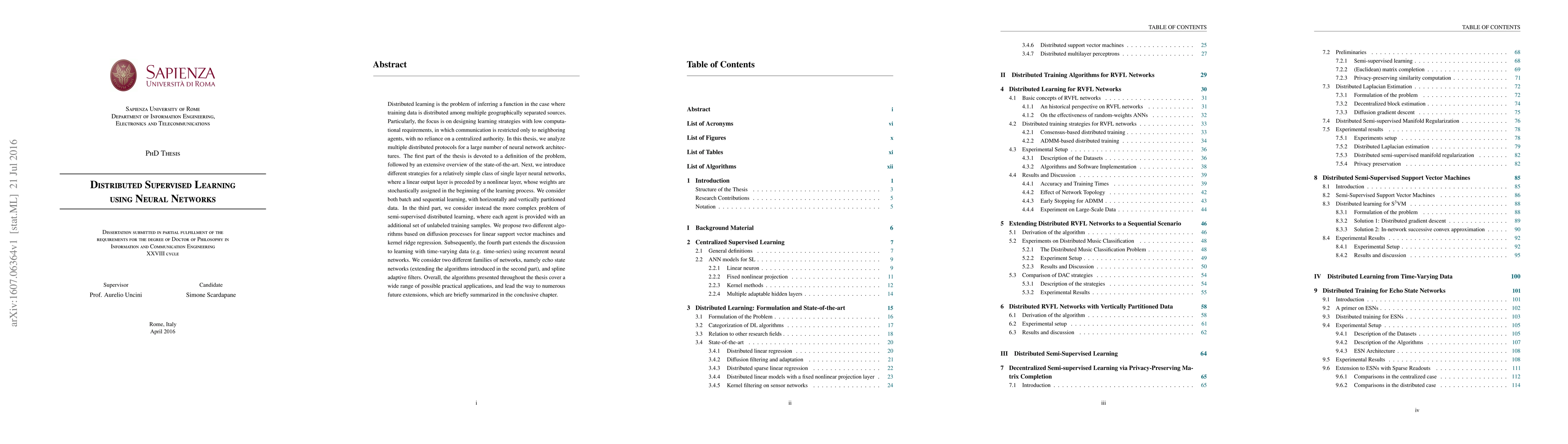 This research paper explores efficient distributed supervised learning using neural networks with low computational requirements and restricted communication between neighboring agents.