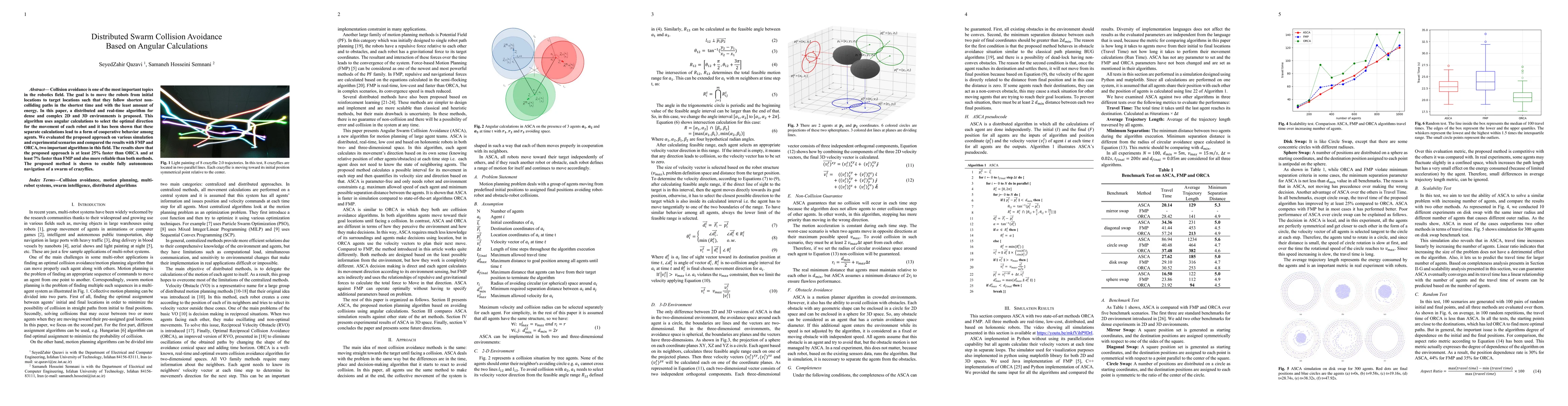 A new algorithm for distributed swarm collision avoidance was proposed, achieving 25% faster navigation than another method and being more reliable, in experiments with drones navigating complex environments.