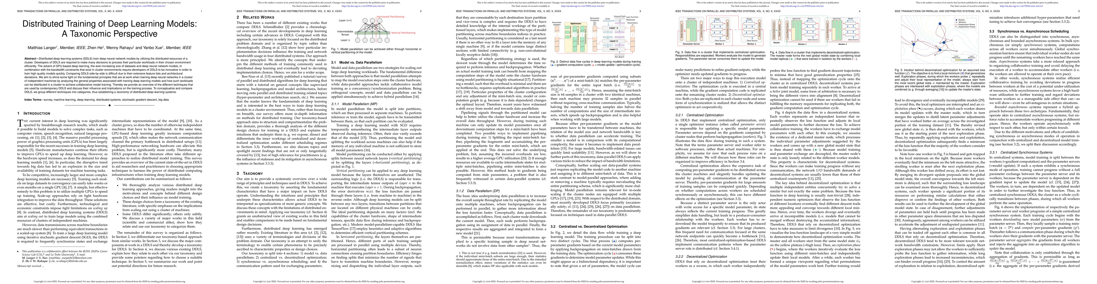 This paper provides a taxonomy for distributed deep learning systems (DDLS), analyzing the fundamental principles and techniques used to train deep neural networks efficiently across clusters. It categorizes various methods and discusses their implications for collaborative model training in distributed environments.
