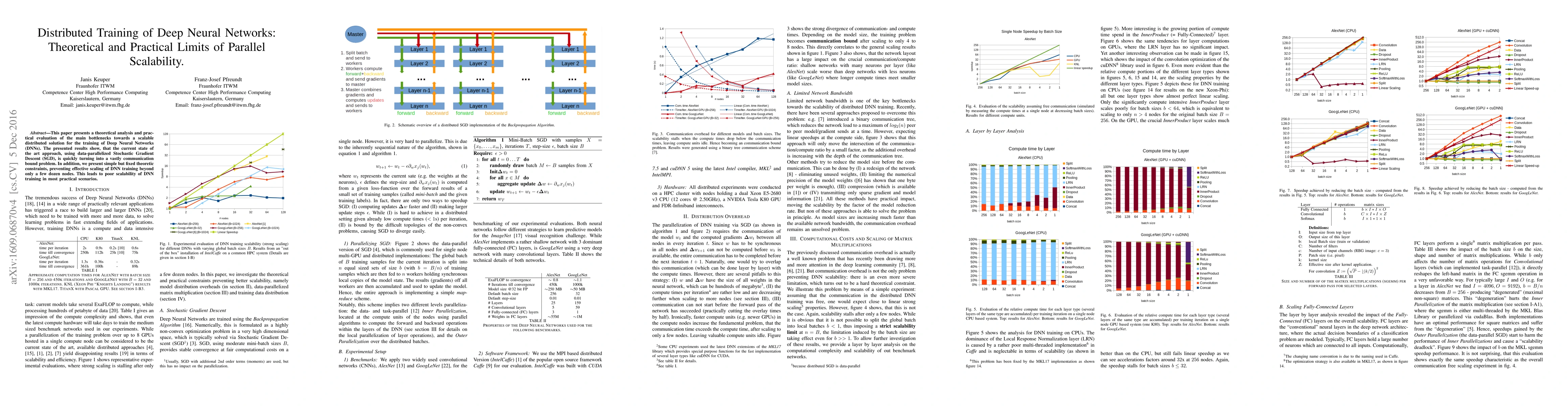 This paper analyzes the theoretical and practical limits of parallel scalability in distributed training of deep neural networks, revealing that current data-parallelized Stochastic Gradient Descent approaches are communication-bound and face theoretical constraints that hinder scaling beyond a few dozen nodes.