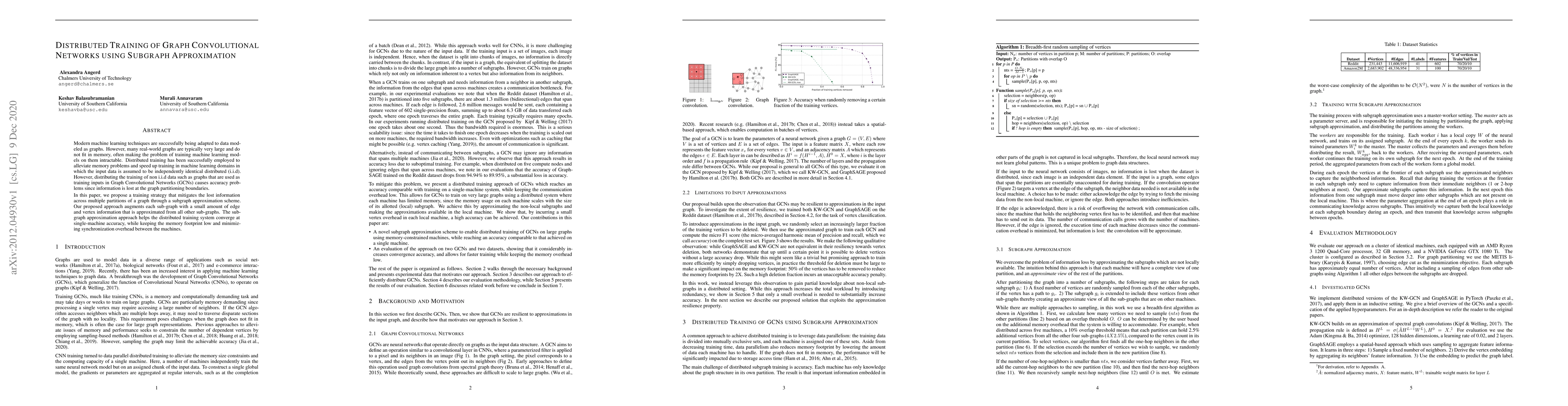 This paper proposes a distributed training strategy for Graph Convolutional Networks (GCNs) using subgraph approximation to mitigate information loss across partitioned graphs. It achieves single-machine accuracy while maintaining low memory and minimizing synchronization overhead.