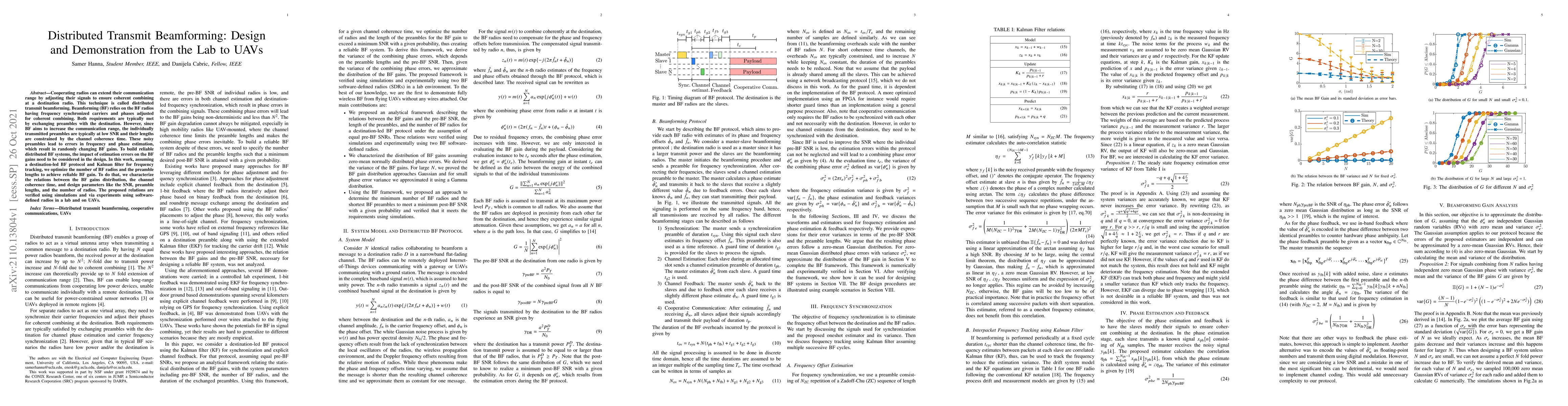 This paper investigates the design and optimization of distributed transmit beamforming for extending communication range, focusing on minimizing errors from noisy preambles. It proposes a method to optimize the number of beamforming radios and preamble lengths, validated through simulations and experimental tests using software-defined radios in lab and UAV environments.