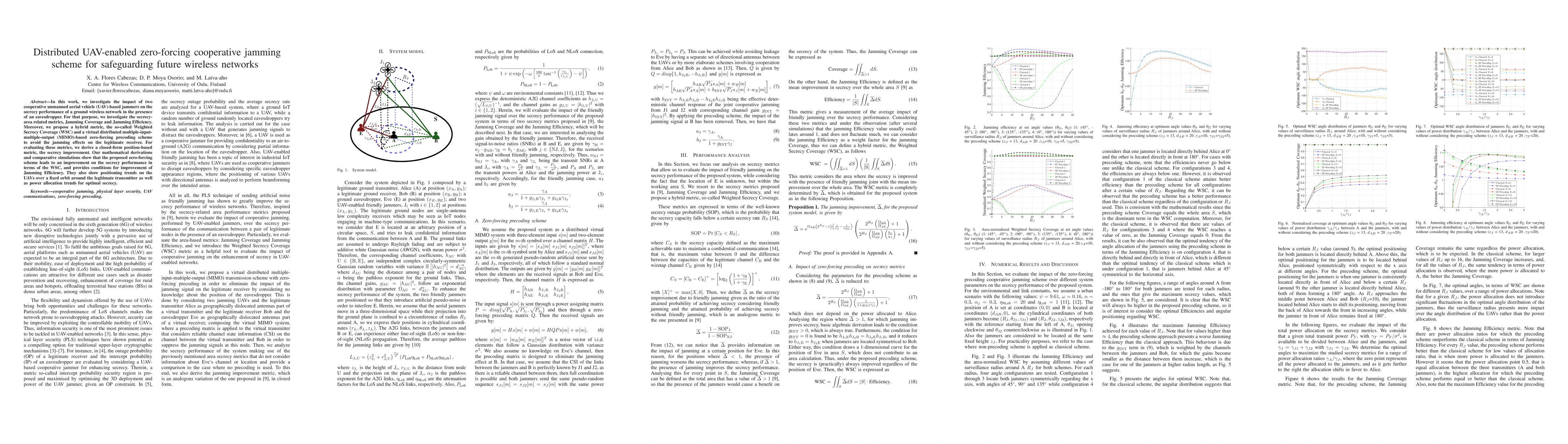 This paper proposes a distributed UAV-based zero-forcing cooperative jamming scheme to enhance the secrecy performance of wireless networks against eavesdroppers. The study introduces a Weighted Secrecy Coverage metric and a virtual MIMO-based zero-forcing precoding scheme to optimize jamming efficiency while safeguarding legitimate receivers.