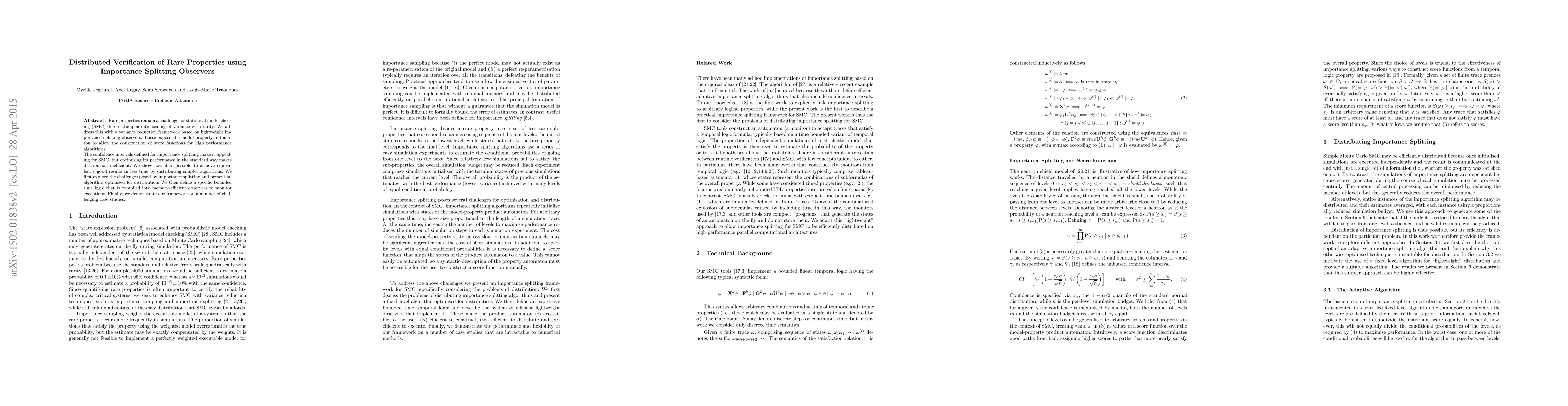 Rare properties remain a challenge for statistical model checking (SMC) due to the quadratic scaling of variance with rarity. We address this with a variance reduction framework based on lightweight importance splitting observers. These expose the model-property automaton to allow the construction of score functions for high performance algorithms. The confidence intervals defined for importance splitting make it appealing for SMC, but optimising its performance in the standard way makes distribution inefficient. We show how it is possible to achieve equivalently good results in less time by distributing simpler algorithms. We first explore the challenges posed by importance splitting and present an algorithm optimised for distribution. We then define a specific bounded time logic that is compiled into memory-efficient observers to monitor executions. Finally, we demonstrate our framework on a number of challenging case studies.