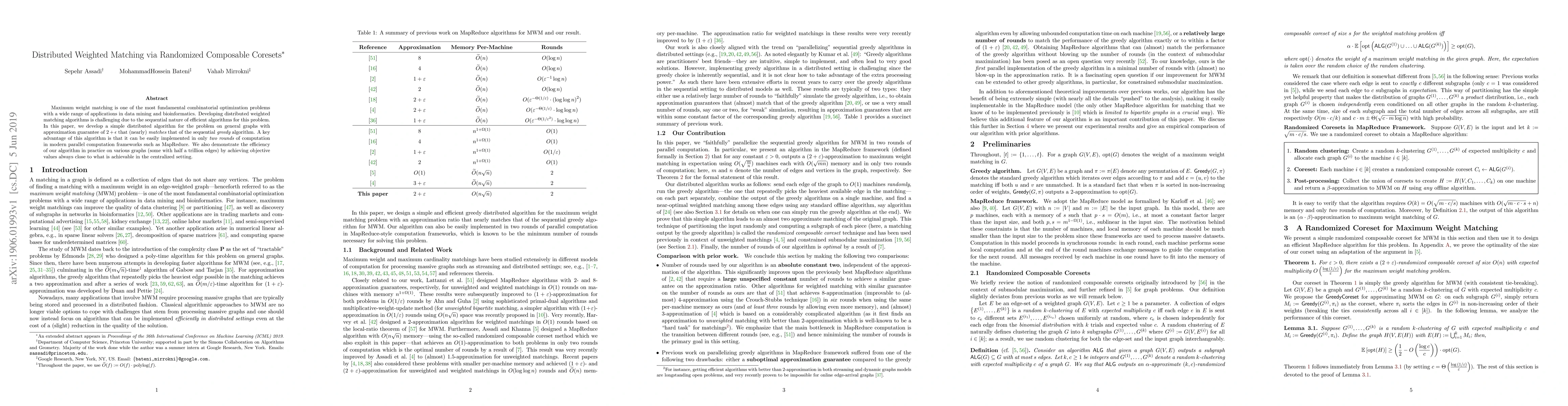 This paper presents a distributed algorithm for solving the maximum weight matching problem with an approximation ratio of $2+\varepsilon$ that requires only two rounds of computation, matching the efficiency of sequential greedy algorithms while scaling to large graphs, as demonstrated on graphs with half a trillion edges.