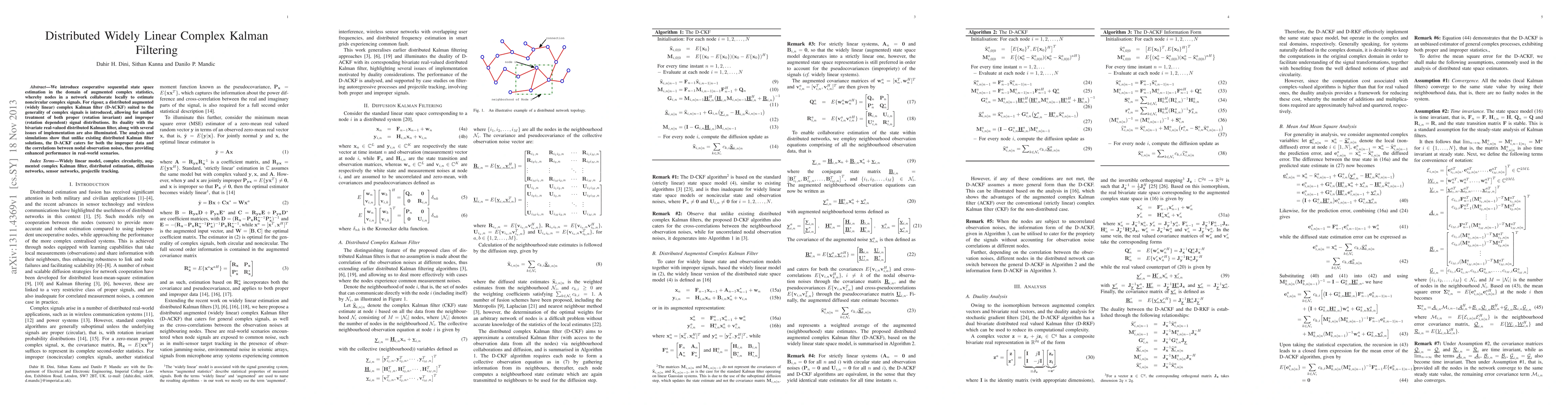 We introduce cooperative sequential state space estimation in the domain of augmented complex statistics, whereby nodes in a network collaborate locally to estimate noncircular complex signals. For rigour, a distributed augmented (widely linear) complex Kalman filter (D-ACKF) suited to the generality of complex signals is introduced, allowing for unified treatment of both proper (rotation invariant) and improper (rotation dependent) signal distributions. Its duality with the bivariate real-valued distributed Kalman filter, along with several issues of implementation are also illuminated. The analysis and simulations show that unlike existing distributed Kalman filter solutions, the D-ACKF caters for both the improper data and the correlations between nodal observation noises, thus providing enhanced performance in real-world scenarios.