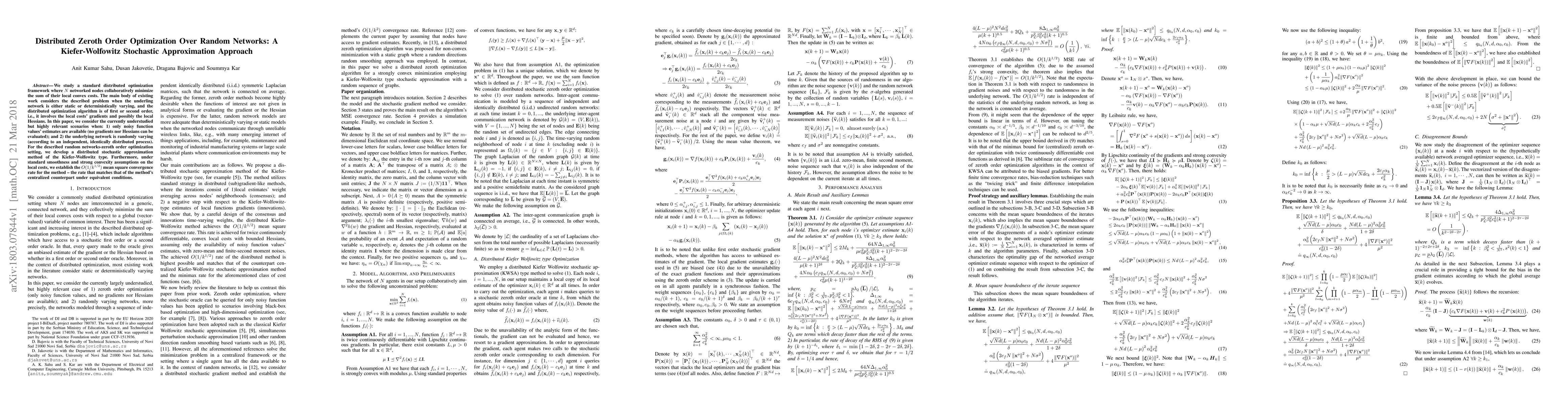 We study a standard distributed optimization framework where $N$ networked nodes collaboratively minimize the sum of their local convex costs. The main body of existing work considers the described problem when the underling network is either static or deterministically varying, and the distributed optimization algorithm is of first or second order, i.e., it involves the local costs' gradients and possibly the local Hessians. In this paper, we consider the currently understudied but highly relevant scenarios when: 1) only noisy function values' estimates are available (no gradients nor Hessians can be evaluated); and 2) the underlying network is randomly varying (according to an independent, identically distributed process). For the described random networks-zeroth order optimization setting, we develop a distributed stochastic approximation method of the Kiefer-Wolfowitz type. Furthermore, under standard smoothness and strong convexity assumptions on the local costs, we establish the $O(1/k^{1/2})$ mean square convergence rate for the method -- the rate that matches that of the method's centralized counterpart under equivalent conditions.