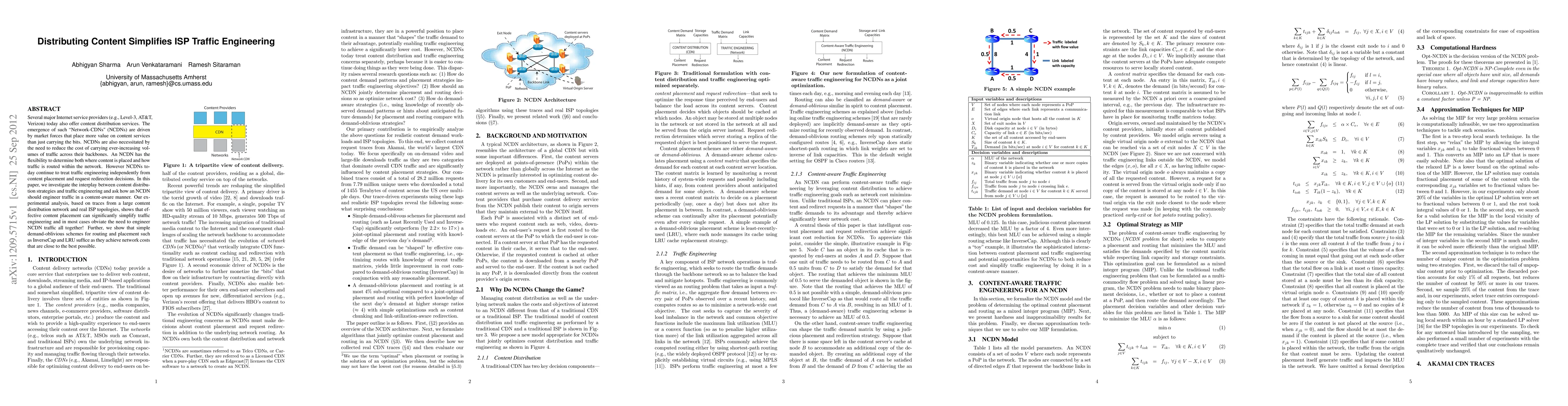 Research finds that content distribution can simplify traffic engineering for Internet service providers, with simple demand-oblivious schemes being effective in most cases, reducing the need to engineer traffic entirely.
