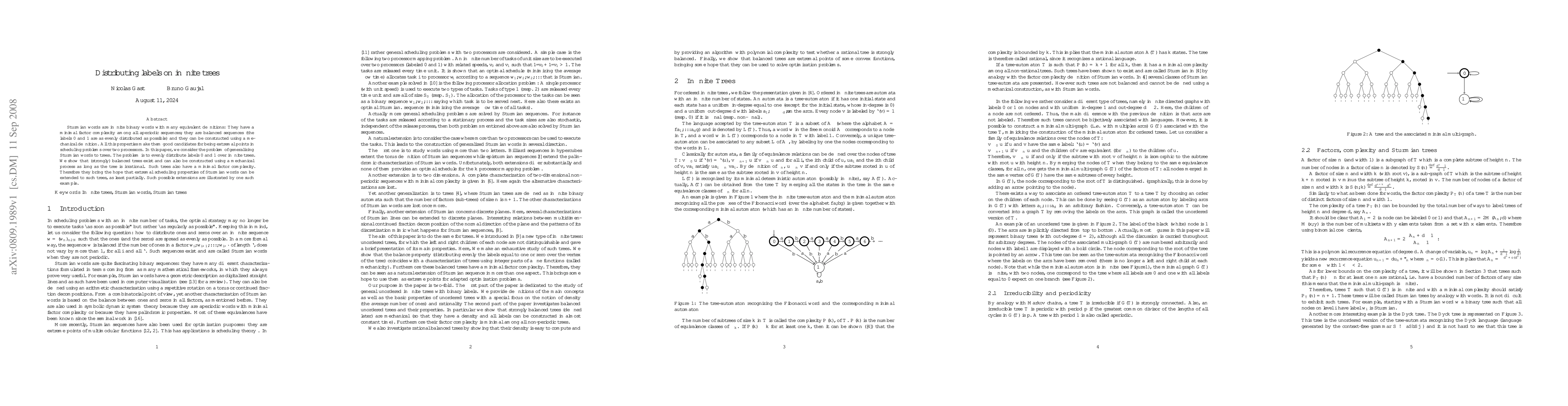 Research shows that it is possible to evenly distribute labels 0 and 1 over infinite trees, similar to Sturmian words, using a mechanical process and creating strongly balanced trees with minimal factor complexity.