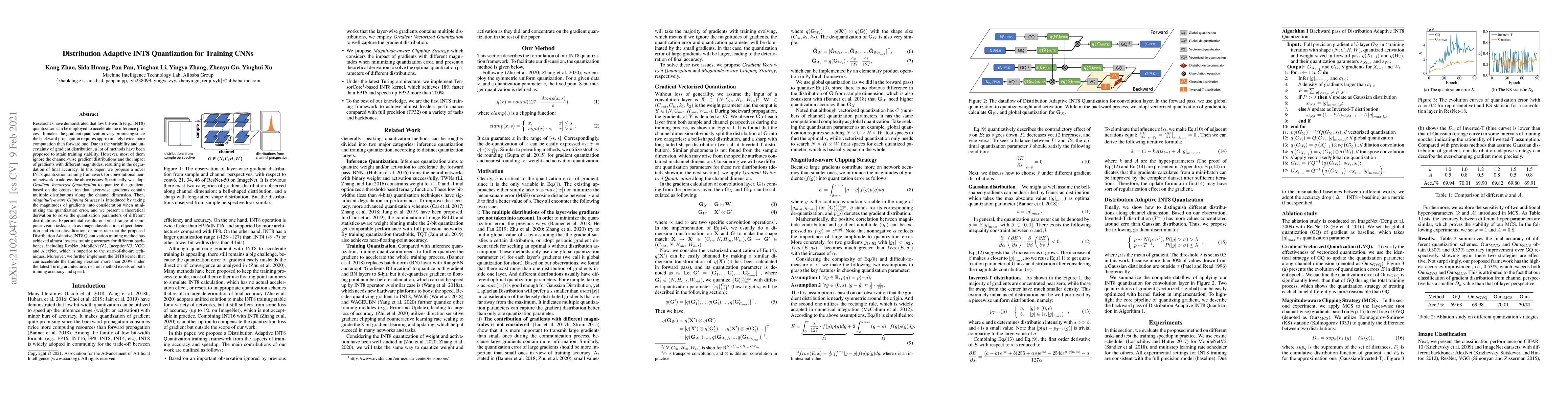 This paper proposes a novel INT8 quantization training framework for CNNs that uses Gradient Vectorized Quantization and a Magnitude-aware Clipping Strategy to address channel-wise gradient distribution variability, achieving near-lossless training accuracy across various CNN architectures and significantly accelerating training speed.