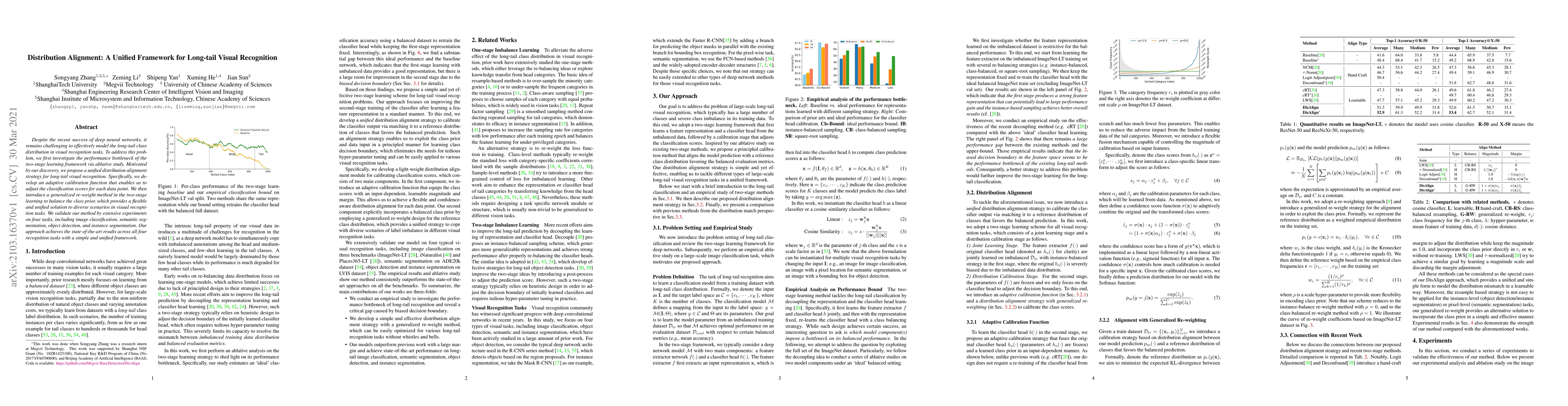 The paper proposes a unified framework named Distribution Alignment to tackle the challenge of long-tail class distribution in visual recognition tasks. It introduces an adaptive calibration function and a generalized re-weight method to balance class priors, achieving state-of-the-art results across multiple recognition tasks.