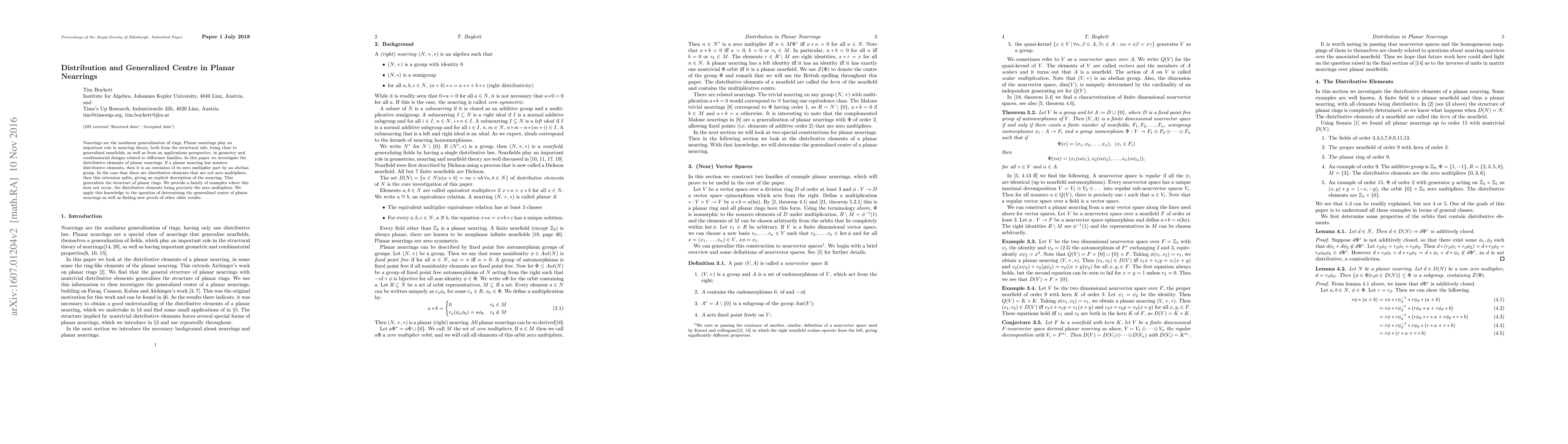 Research investigates distributive elements in planar nearrings, revealing a way to extend zero multiplier parts into abelian groups, with implications for understanding generalized centers of planar nearrings.