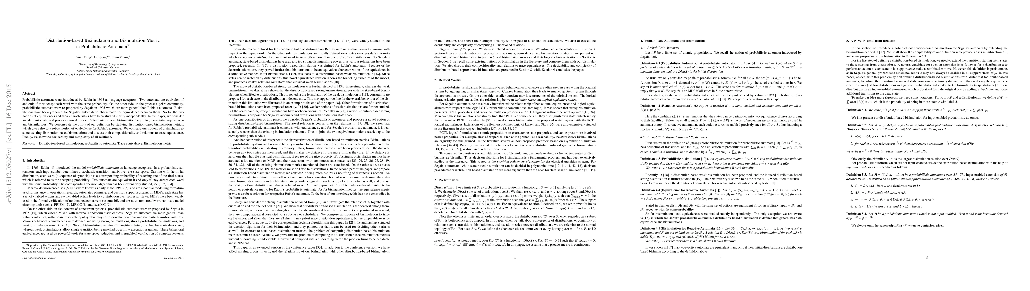 This paper introduces a novel distribution-based bisimulation for Segala's probabilistic automata, merging existing equivalence notions and proposing metrics for robust equivalence in Rabin's automata. It also discusses the decidability and complexity of these relations and compares them to existing distribution-based bisimulations.
