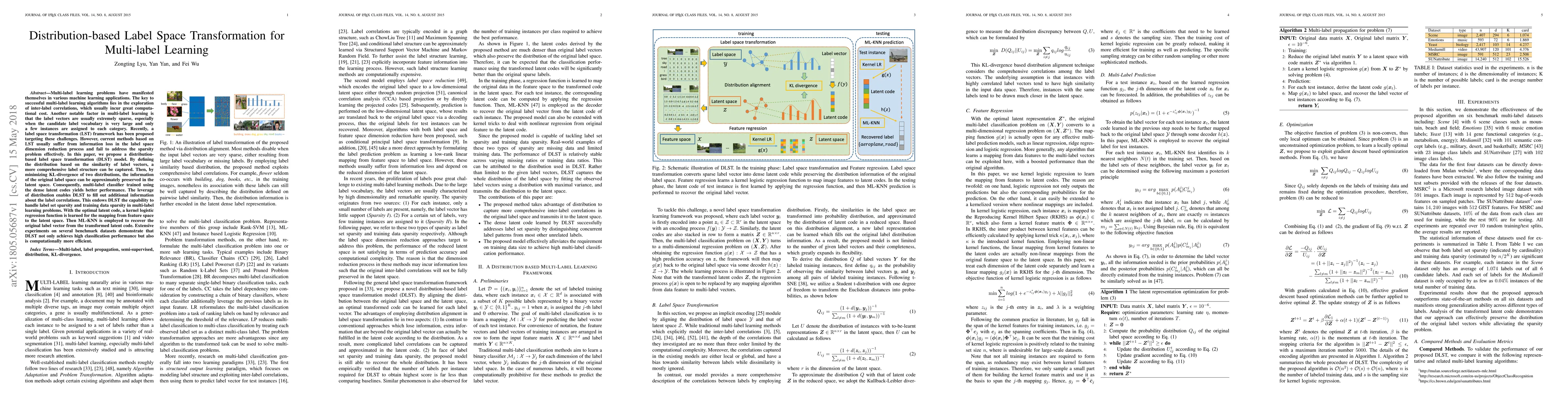 This paper proposes a distribution-based label space transformation (DLST) model to address computational costs and sparsity issues in multi-label learning. By leveraging label vector similarity distributions and minimizing KL-divergence, DLST preserves original label space information and enhances performance of multi-label classifiers.
