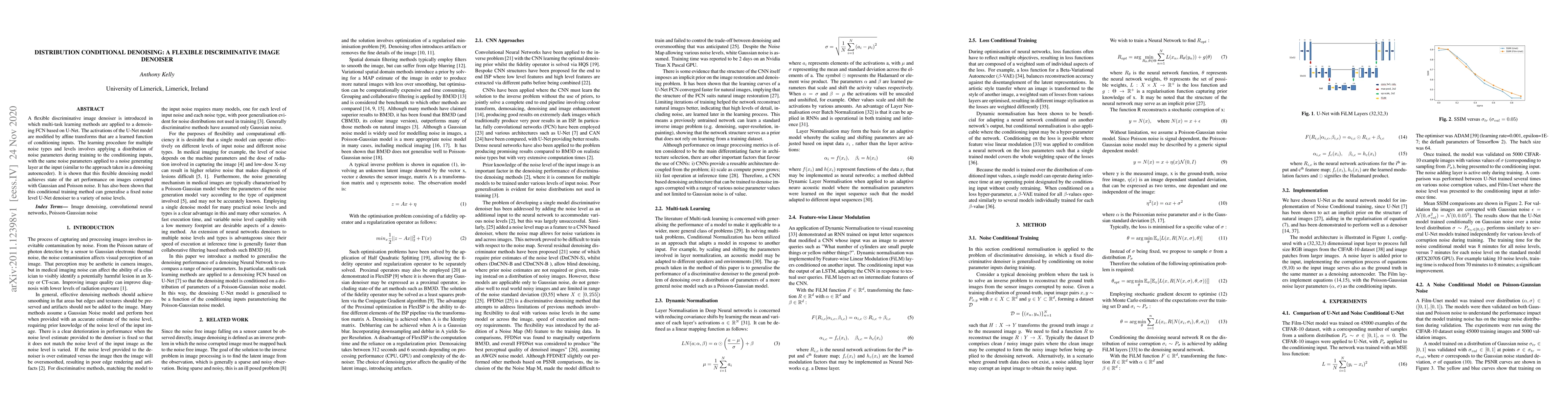 A flexible discriminative image denoiser is introduced in which multi-task learning methods are applied to a densoising FCN based on U-Net. The activations of the U-Net model are modified by affine transforms that are a learned function of conditioning inputs. The learning procedure for multiple noise types and levels involves applying a distribution of noise parameters during training to the conditioning inputs, with the same noise parameters applied to a noise generating layer at the input (similar to the approach taken in a denoising autoencoder). It is shown that this flexible denoising model achieves state of the art performance on images corrupted with Gaussian and Poisson noise. It has also been shown that this conditional training method can generalise a fixed noise level U-Net denoiser to a variety of noise levels.