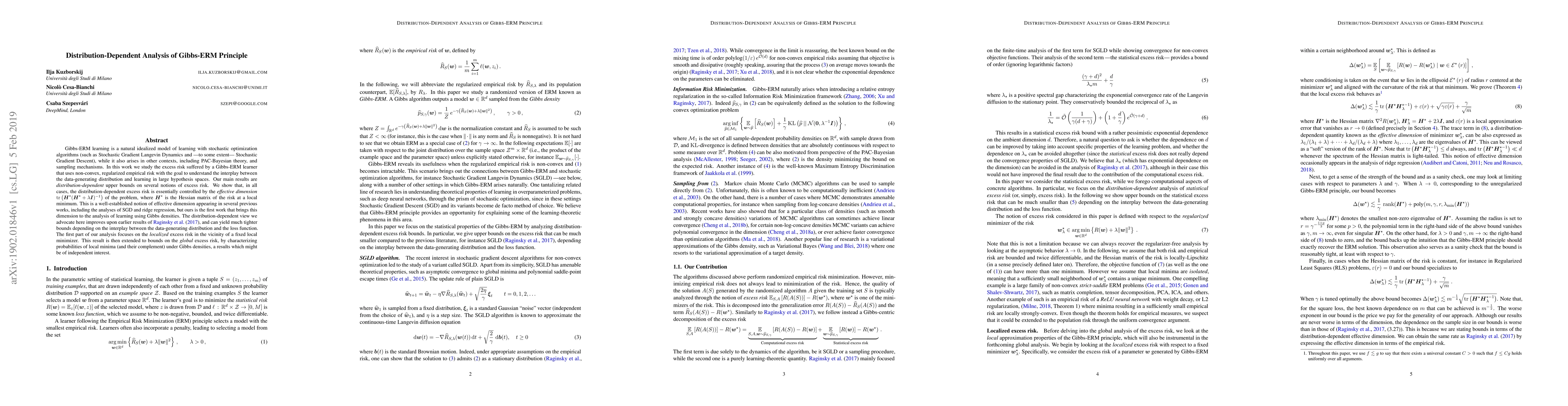 This paper studies the excess risk of Gibbs-ERM learners using non-convex, regularized empirical risk, focusing on distribution-dependent upper bounds. It reveals that the effective dimension, defined via the Hessian matrix, controls the distribution-dependent excess risk, providing tighter bounds compared to previous works.