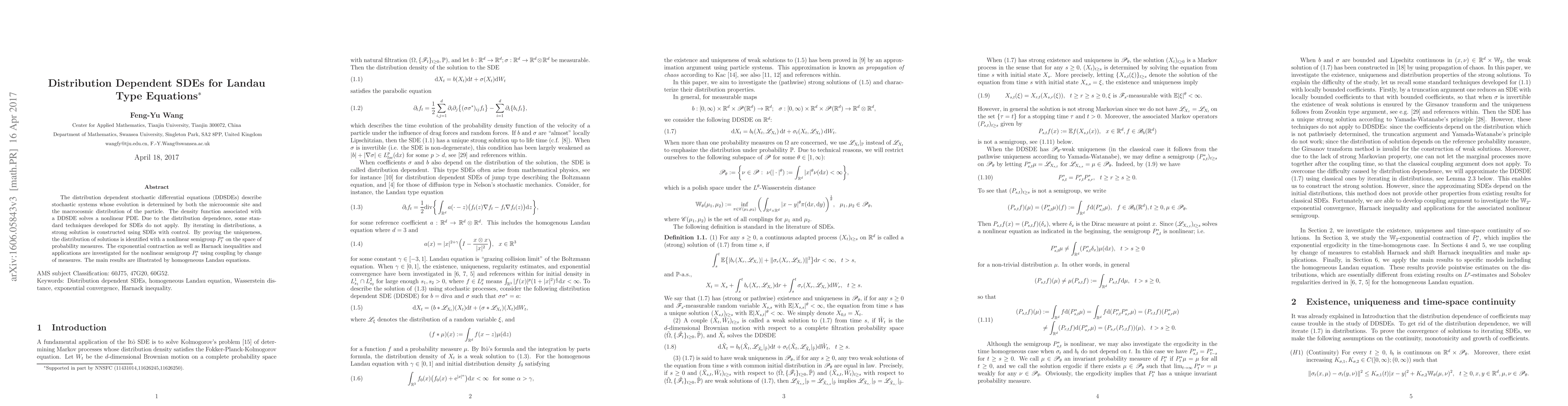 The distribution-dependent stochastic differential equations (DDSDEs) describe stochastic systems whose evolution is determined by both the microcosmic site and the macrocosmic distribution of the particle. The density function associated with a DDSDE solves a non-linear PDE. Due to the distribution-dependence, some standard techniques developed for SDEs do not apply. By iterating in distributions, a strong solution is constructed using SDEs with control. By proving the uniqueness, the distribution of solutions is identified with a non-linear semigroup $P_t^*$ on the space of probability measures. The exponential contraction as well as Harnack inequalities and applications are investigated for the non-linear semigroup $P_t^*$ using coupling by change of measures. The main results are illustrated by homogeneous Landau equations.