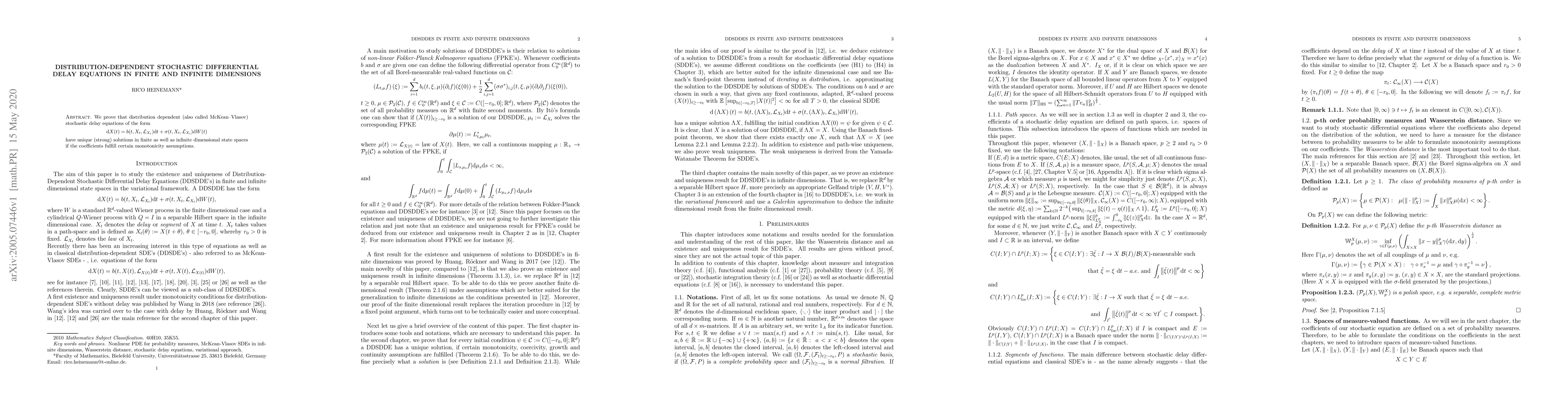We prove that distribution dependent (also called McKean--Vlasov) stochastic delay equations of the form \begin{equation*} \mathrm{d}X(t)= b(t,X_t,\mathcal{L}_{X_t})\mathrm{d}t+ \sigma(t,X_t,\mathcal{L}_{X_t})\mathrm{d}W(t) \end{equation*} have unique (strong) solutions in finite as well as infinite dimensional state spaces if the coefficients fulfill certain monotonicity assumptions.