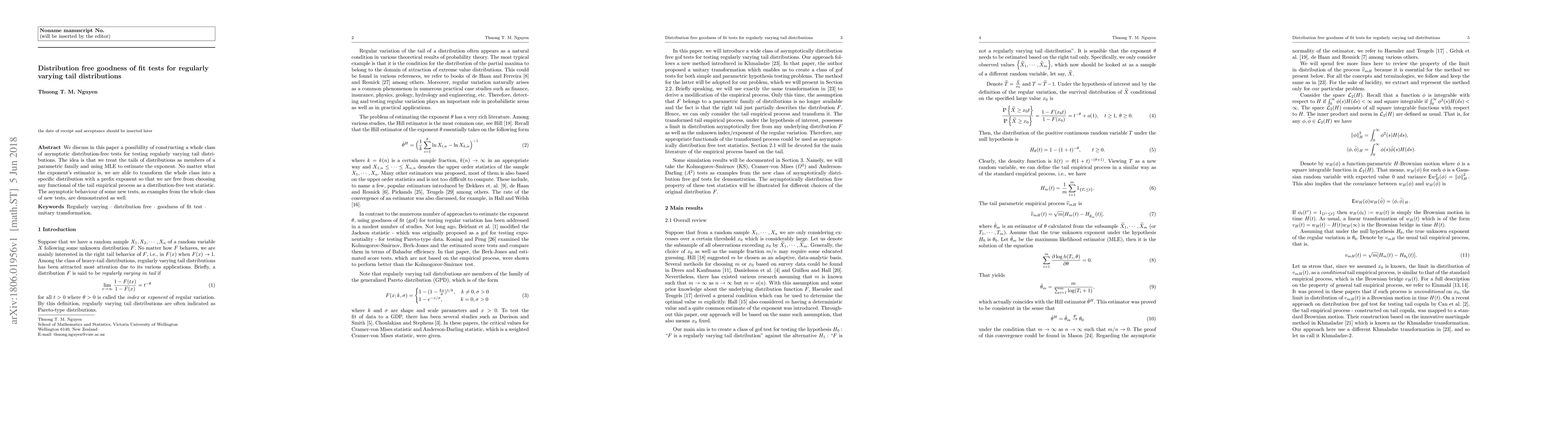 We discuss in this paper a possibility of constructing a whole class of asymptotic distribution-free tests for testing regularly varying tail distributions. The idea is that we treat the tails of distributions as members of a parametric family and using MLE to estimate the exponent. No matter what the exponent's estimator is, we are able to transform the whole class into a specific distribution with a prefix exponent so that we are free from choosing any functional of the tail empirical process as a distribution-free test statistic. The asymptotic behavior of some new tests, as examples from the whole class of new tests, are demonstrated as well.